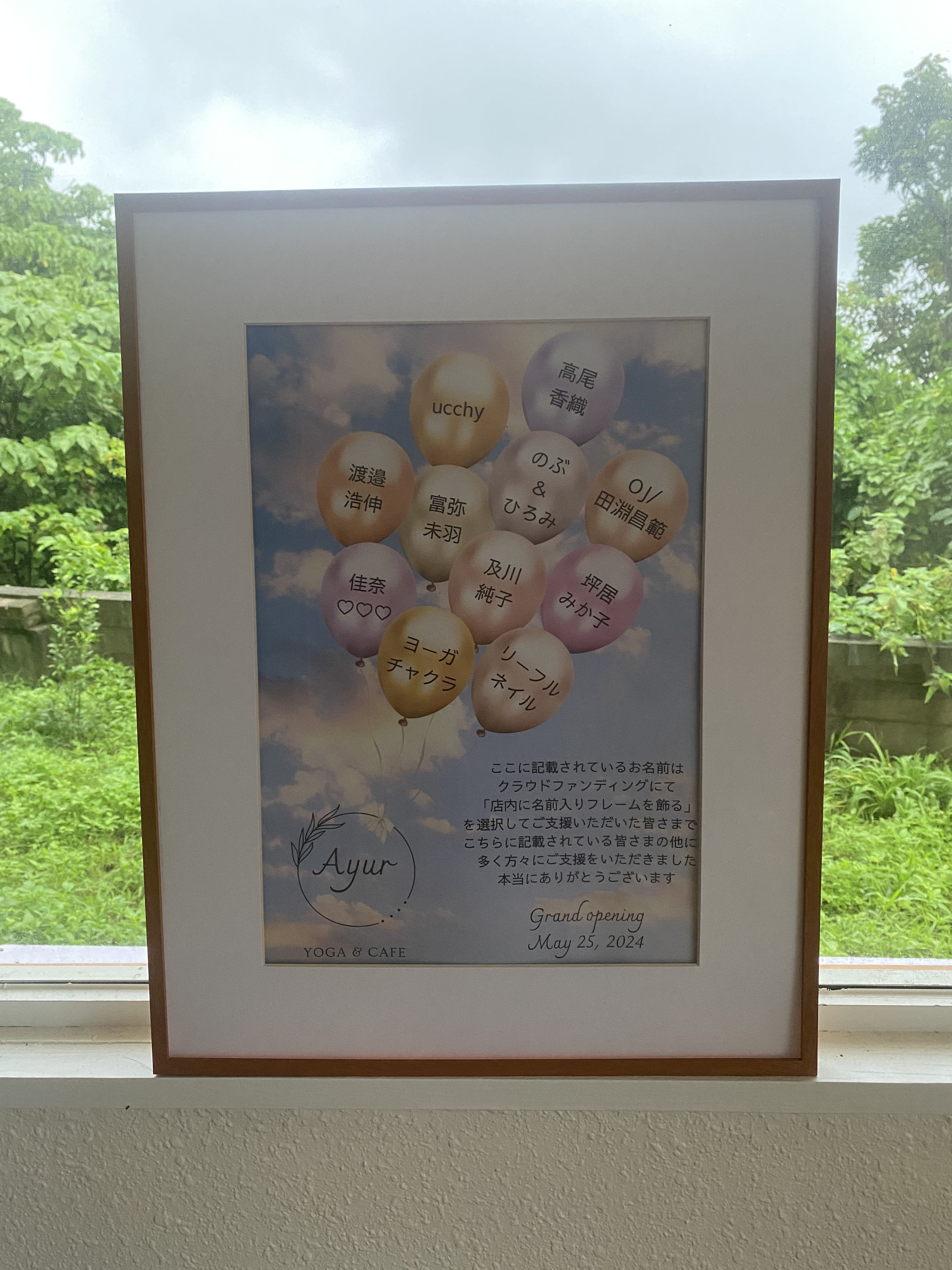 Ayurのロゴに風船をつけ、その風船ひとつひとつに、支援くださった方のお名前を記載するというデザインにしました。