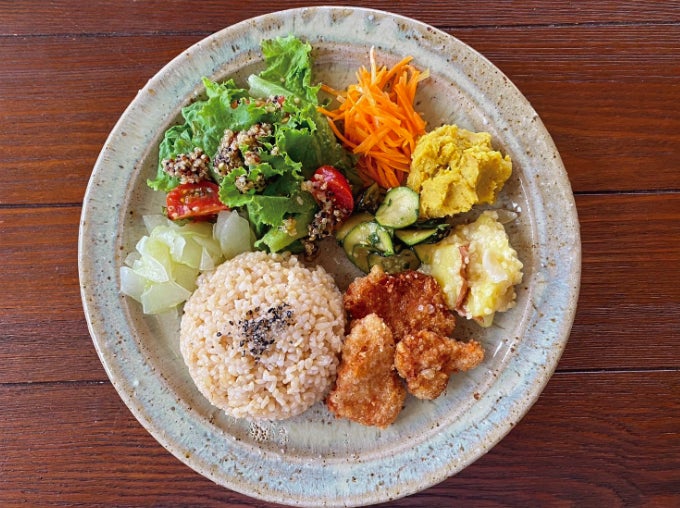 野菜をたっぷり使った、安心でからだに優しいお食事を楽しんで頂きます。基本的に肉と魚は使いません。調味料や食品は、無添加のものを使用します。できる限り無農薬の野菜を使用します。(場合によっては、低農薬の野菜も使用します。)