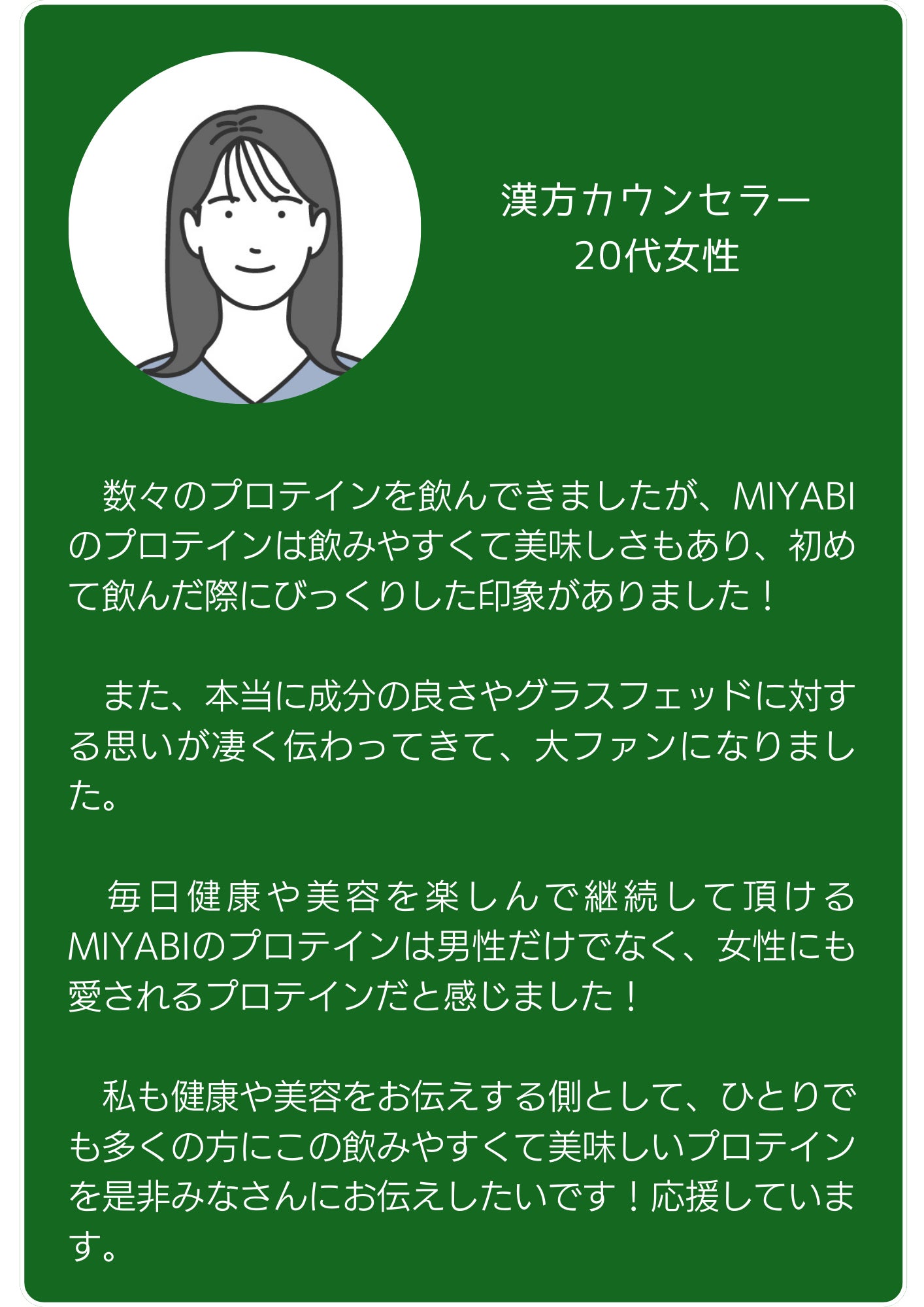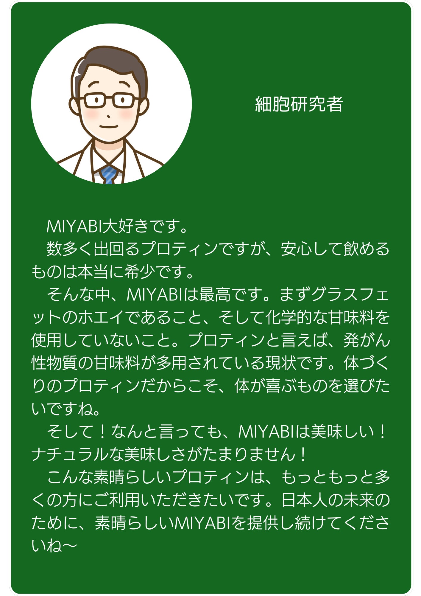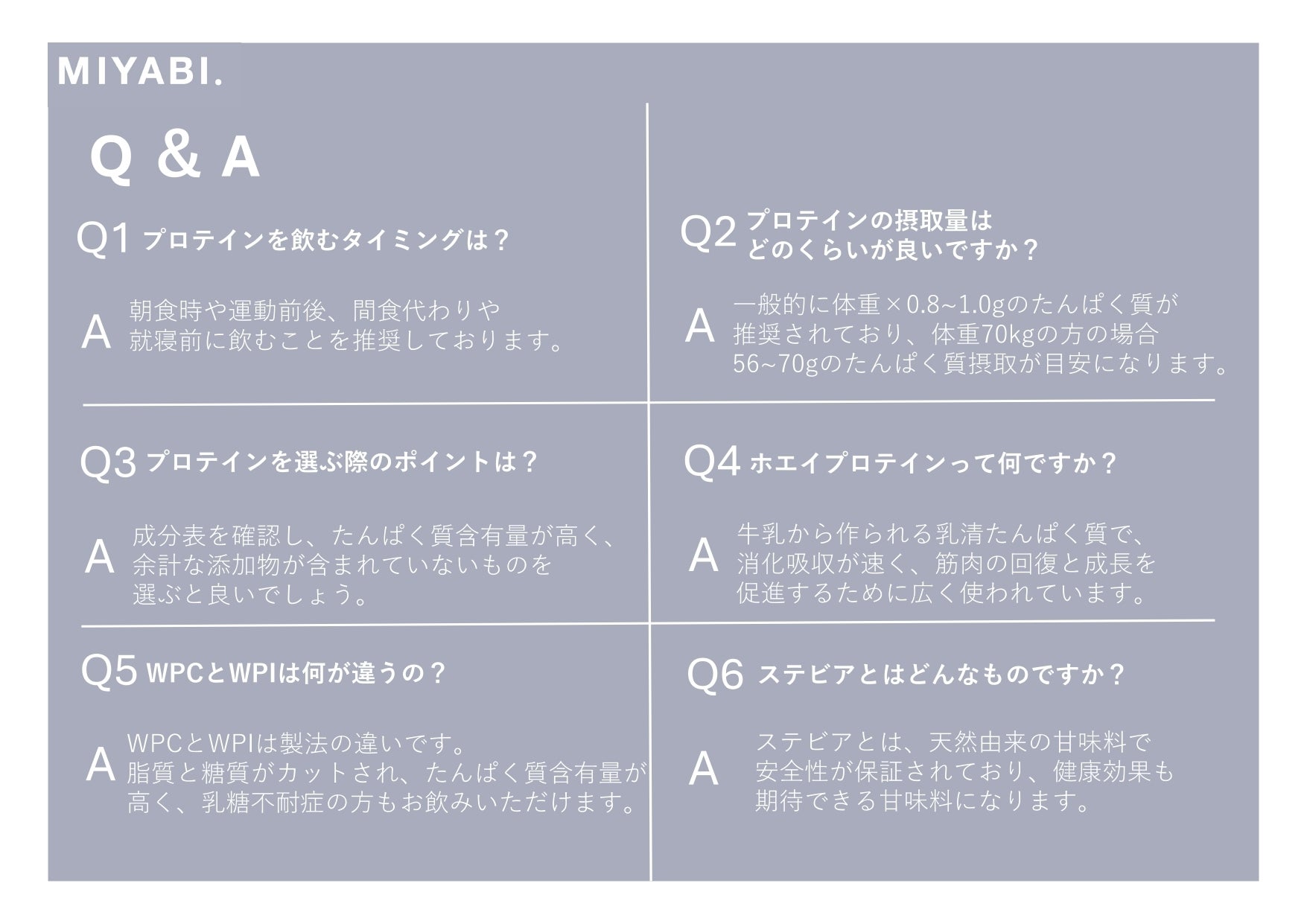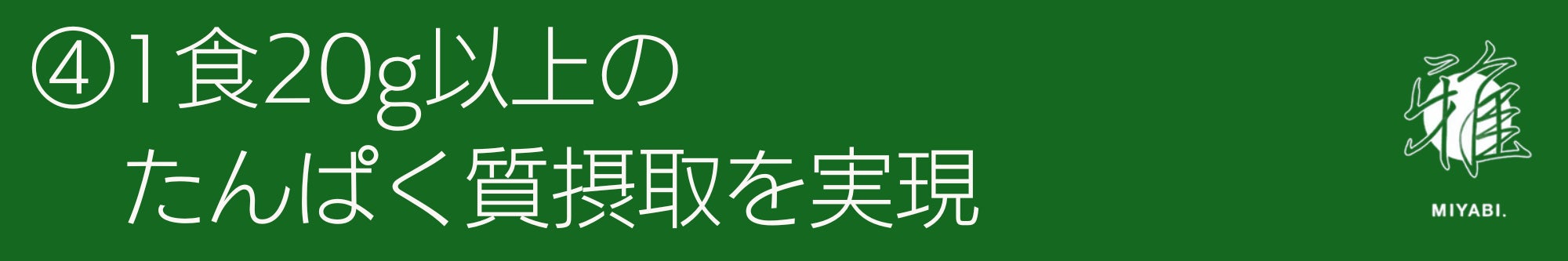 毎日のプロテインに、1食20gのたんぱく質を摂取できる【MIYABI.】をぜひ、お選びください。