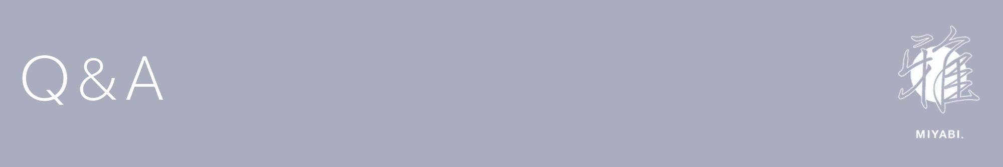 【MIYABI.】 は「何を”摂る”かより、何を”摂らない”か」をブランドコンセプトとして掲げ、本質的に相⼿のことを考えた商品を通じて、その場でのおいしい、嬉しいといった短期的な豊かさ以上に、その⼈の体や⼈⽣を考え、⻑期的な豊かさをもたらしていきます。