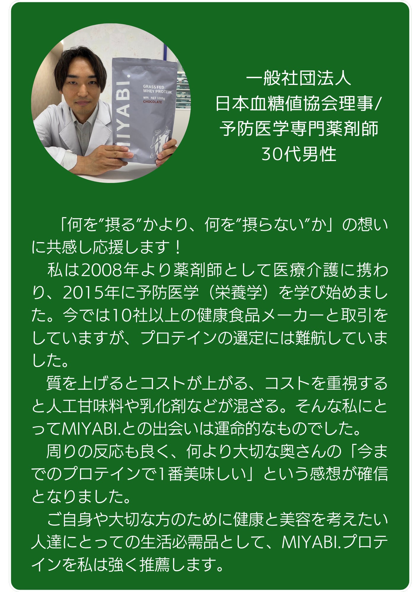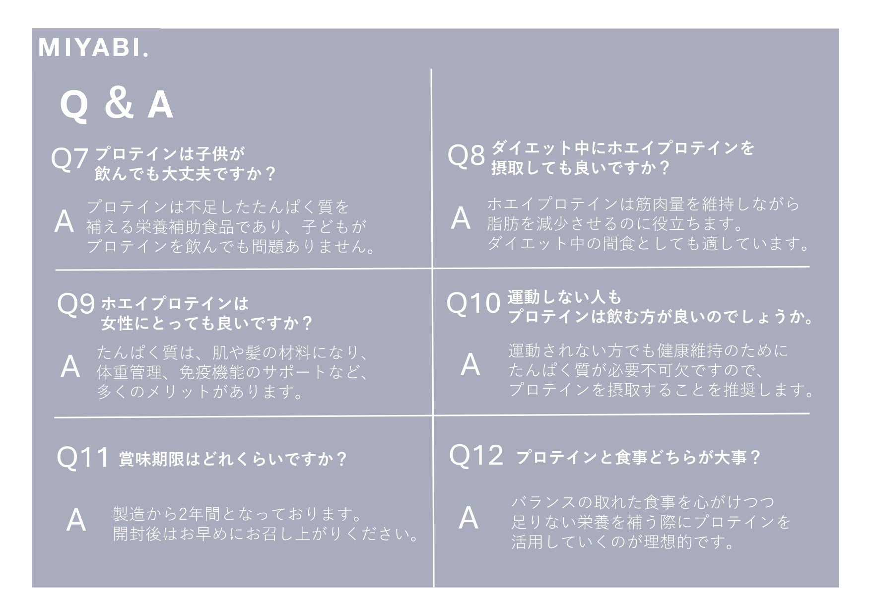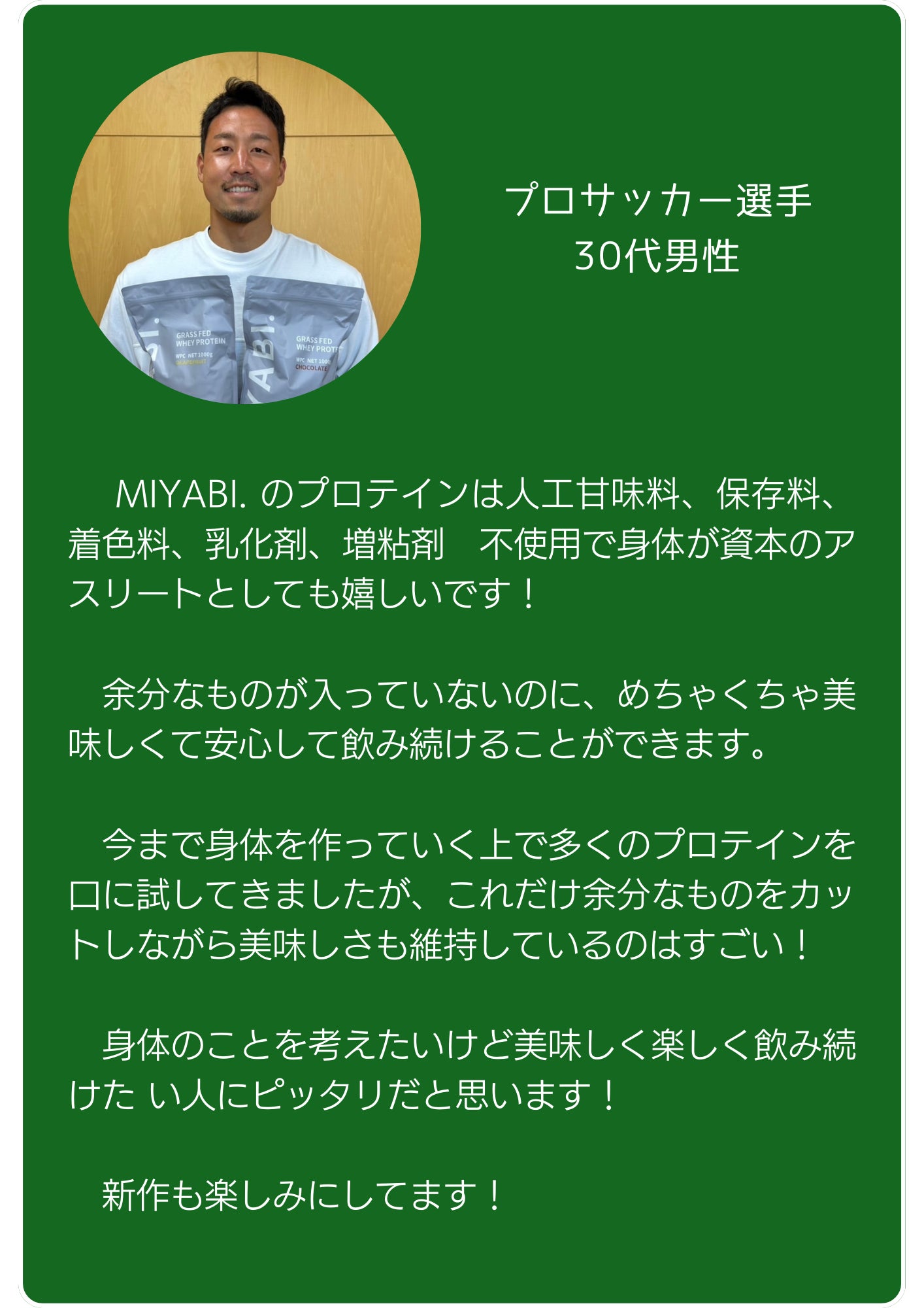 毎日のプロテインに、必要最低限の原材料のみで構成されたプロテイン【MIYABI.】をぜひお選びください。