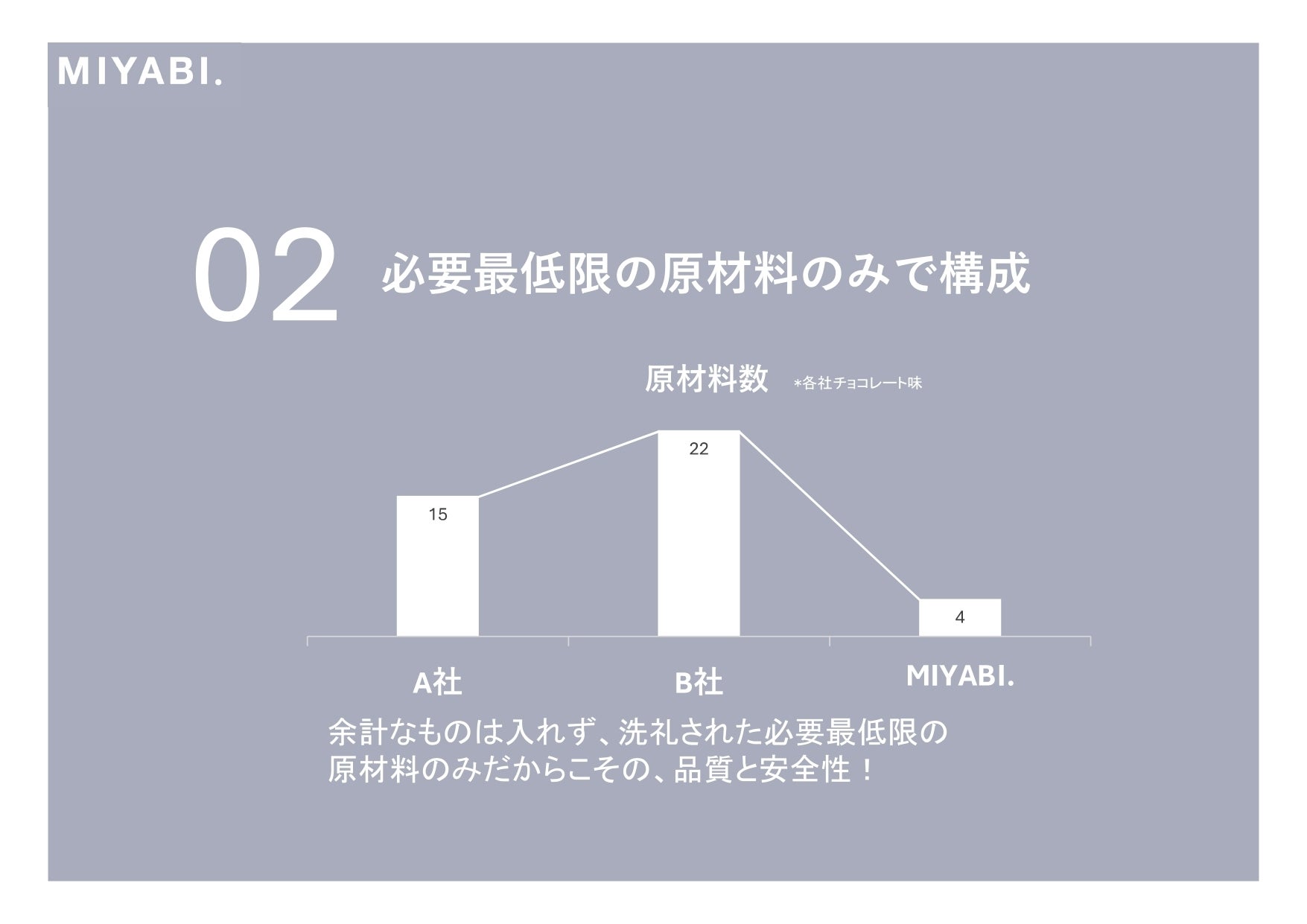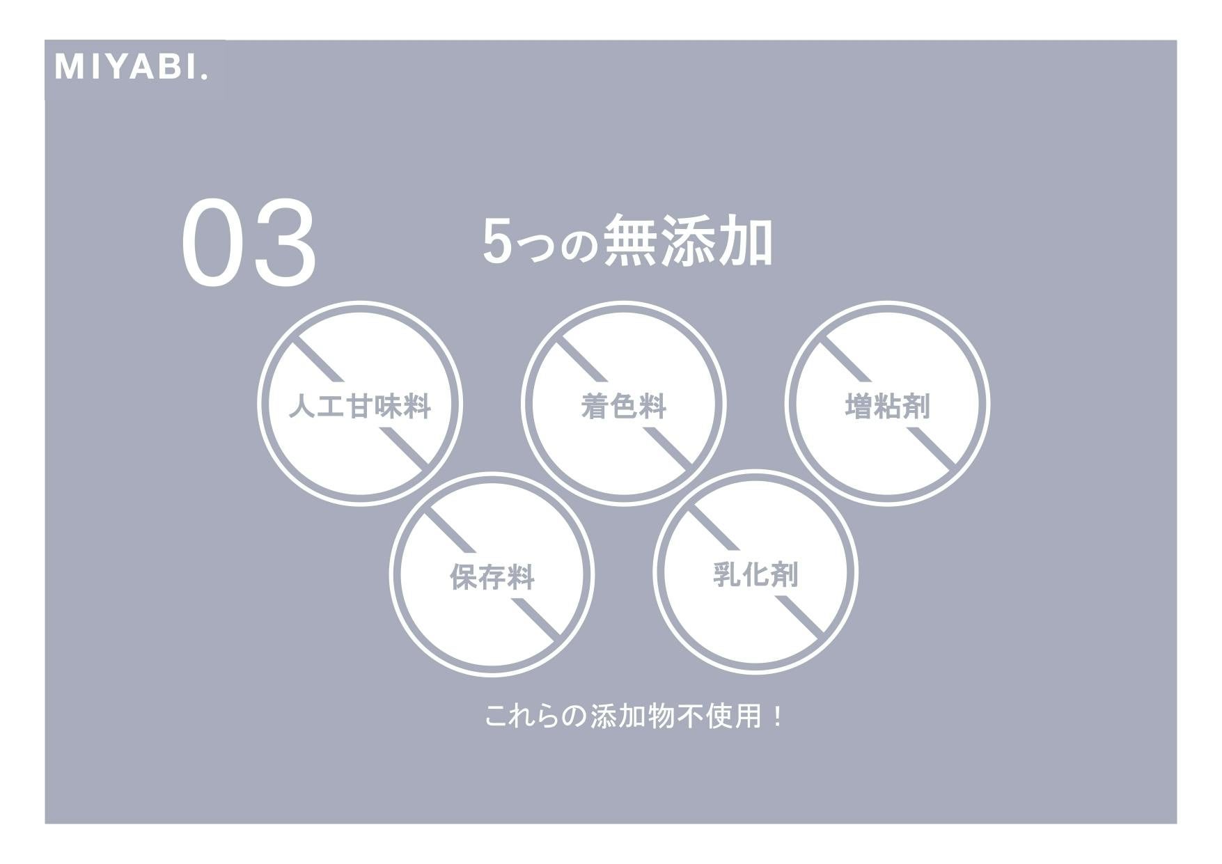 これまで「何を摂るか」「何を入れるか」ばかりを気にしてきましたが、より良い健康のためには「何を摂らないか」「何を入れないか」がより重要。その考え方をベースに作り上げたのが、【MIYABI.】です。