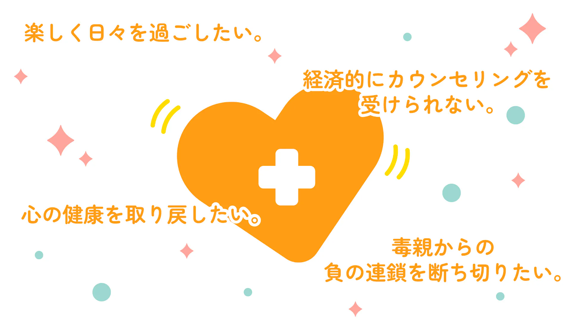 経済的な理由でカウンセリングを受けられず、苦しんでいるシングルマザーに、皆様の温かい支援でカウンセリングを提供します。
