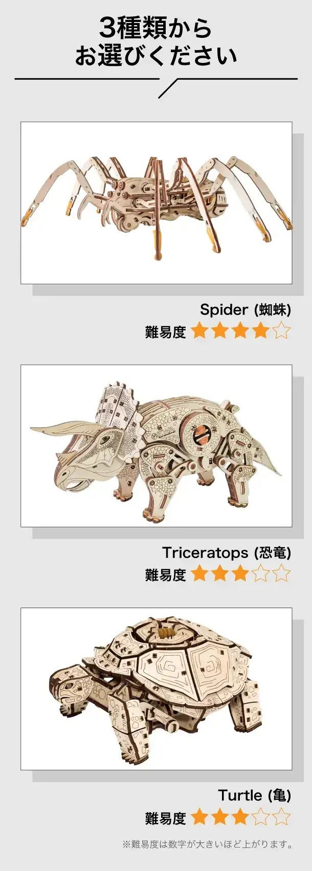 Spider、Triceratops、Turtleのセット
