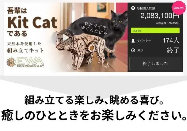 前回、Makuake、machi-yaで実施したKit Cat(猫)は目標金額を大きく上回る大成功!
