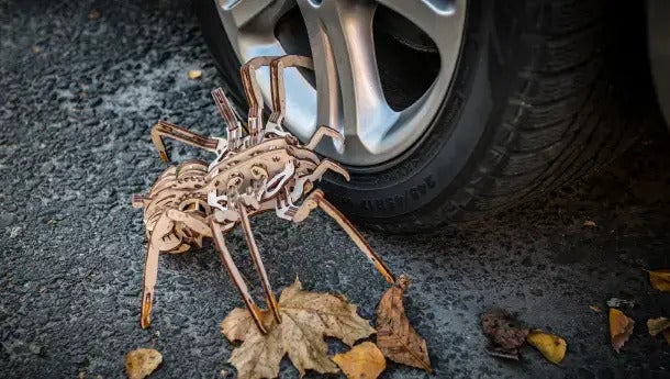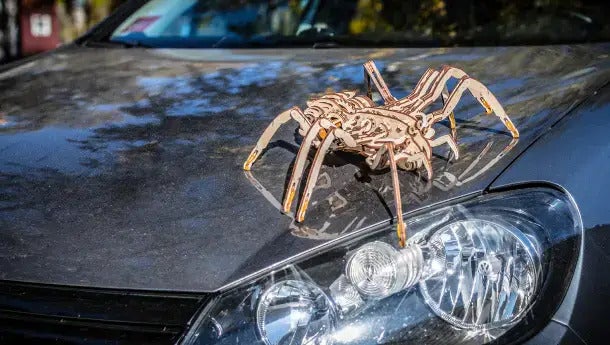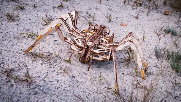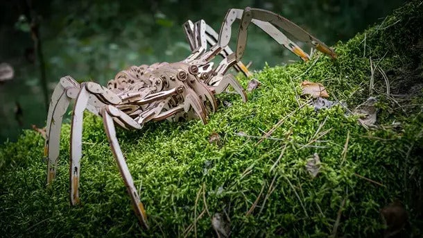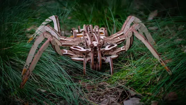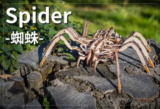 本物のクモが飼育できない状況でも、木製のクモなら可能!