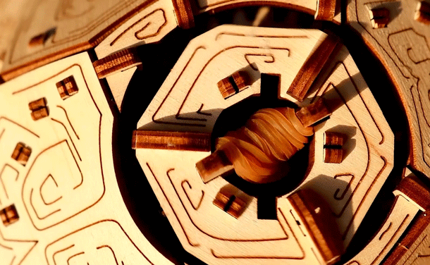 動力となるゼンマイは輪ゴムを使用します。(輪ゴムは付属します)
