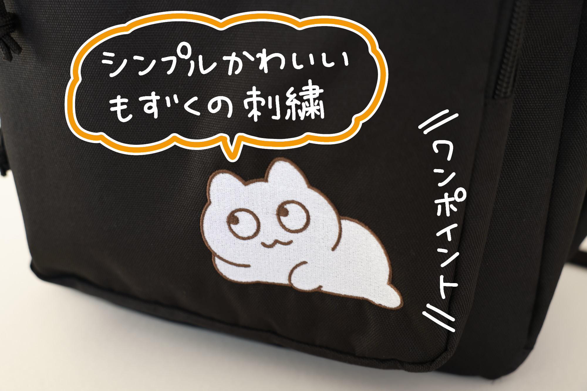 ワンポイントのもずくが刺繍されたシンプルで可愛らしいリュックです。