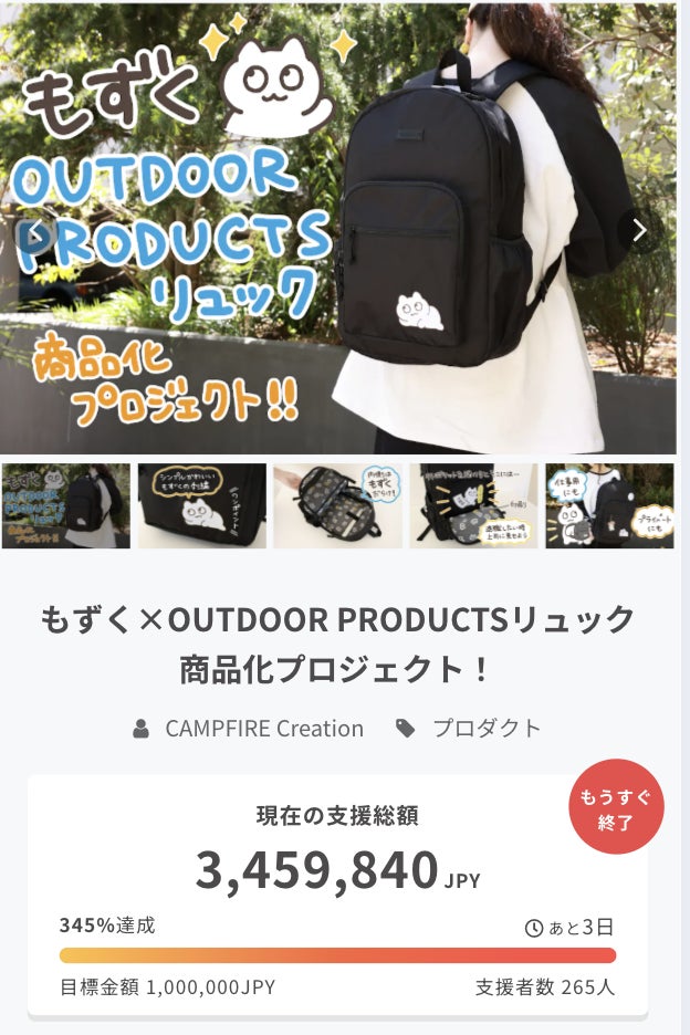 みなさまのご支援により、¥3,831,055(383%)と目標金額を大きく上回り商品化をすることができました。他にも様々なアイデア商品やオリジナルグッズを実現化しておりますのでぜひホームページをご覧ください!