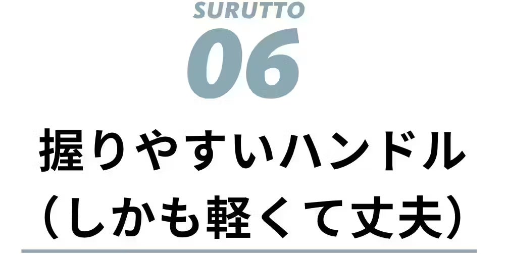 フライパンの重みに対し、女性が感じる扱いやすさのボーダーラインは1kgと言われています。SURUTTOは底面が溶射加工になったことにより、不要な重みをカットできたため、全サイズ1kgより軽くすることに成功しました。