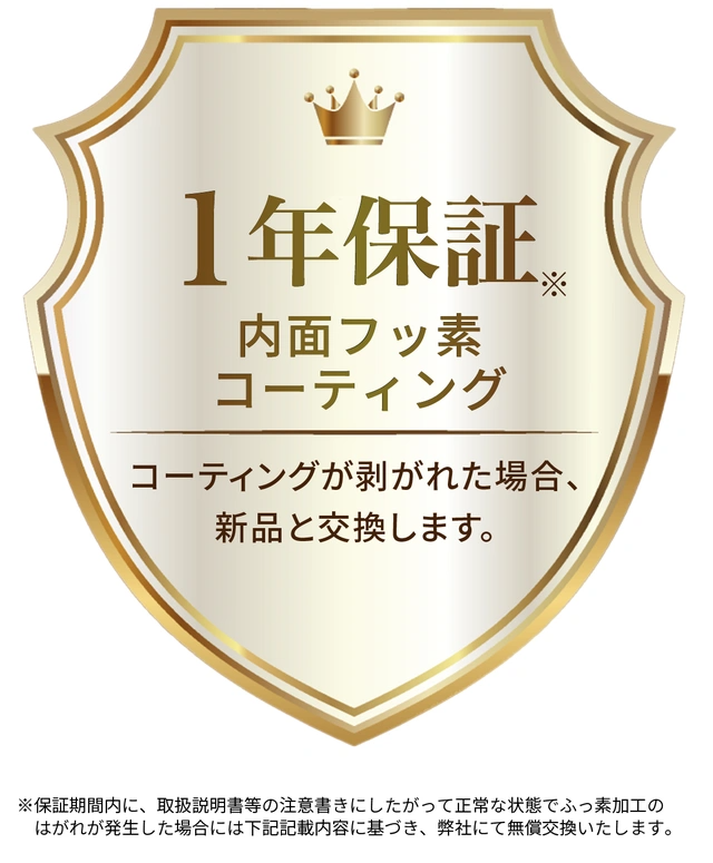 1年保証(※保証は内面ふっ素樹脂のはがれが対象です)