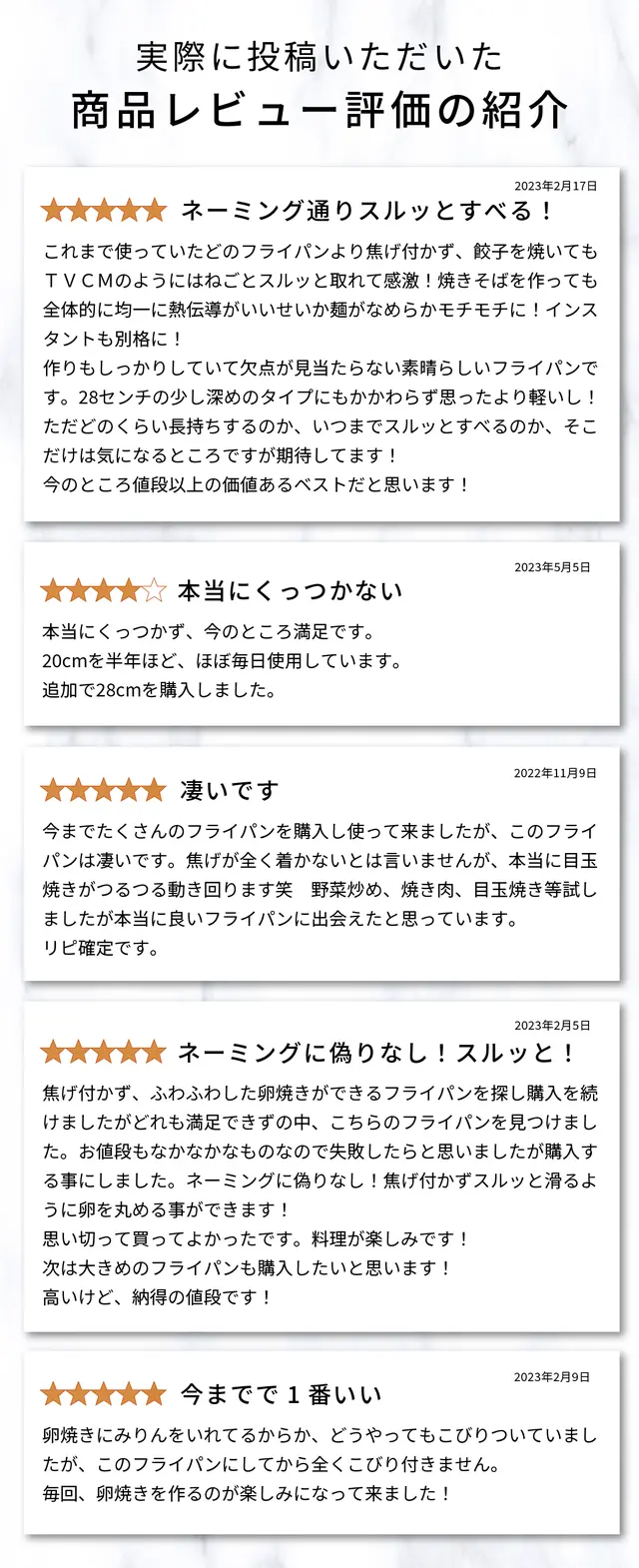 スペックや、性能試験などの結果は、あくまで机上の空論です。数値上は優れていても、実際に使う人が使いにくければ良いフライパンとは言えません。