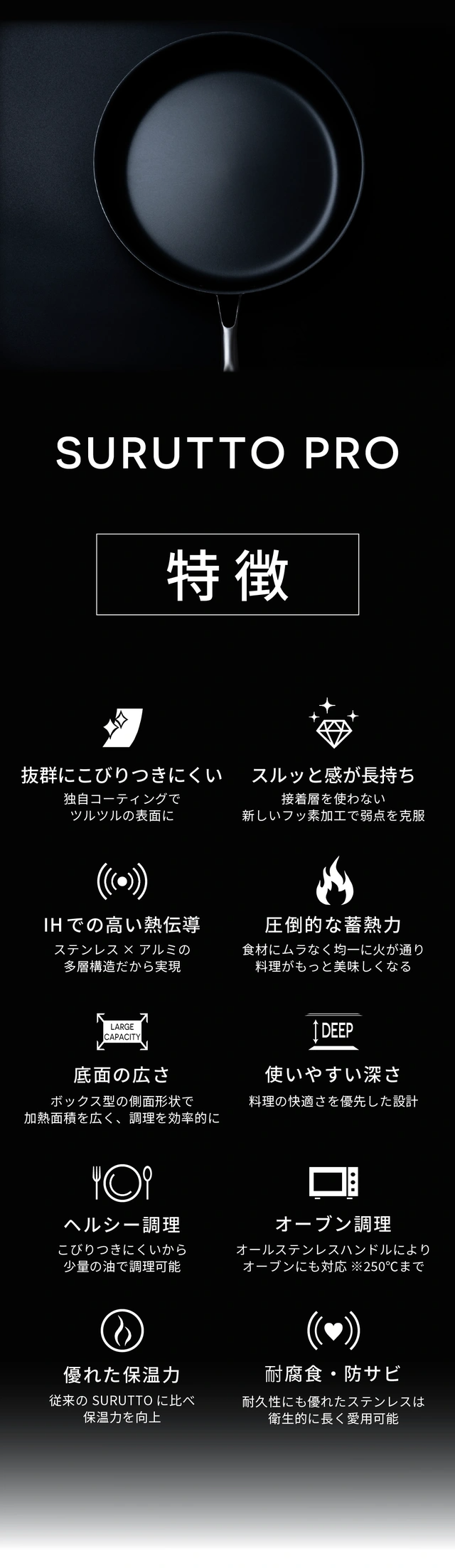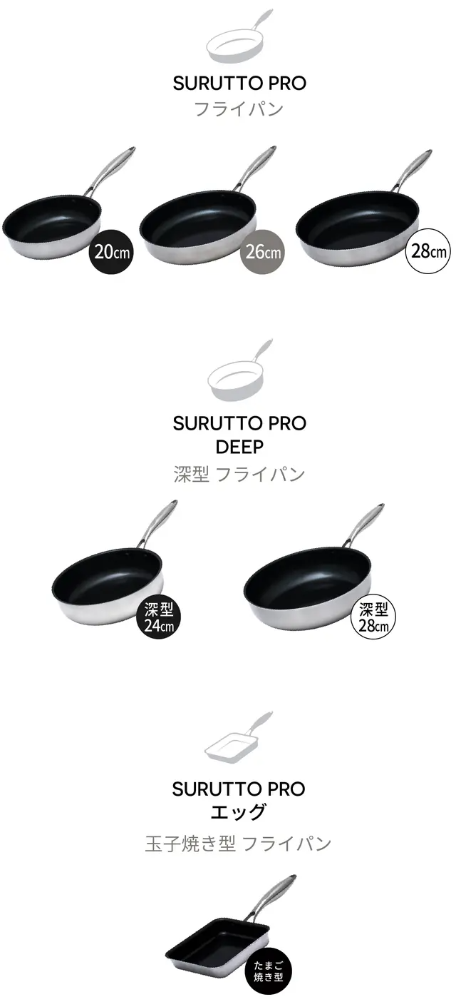 ※SURUTTOのコーティングは、フッ素塗膜加工の1種です。素材の特性上、強火や空焚きの禁止などいくつかの注意事項があります。