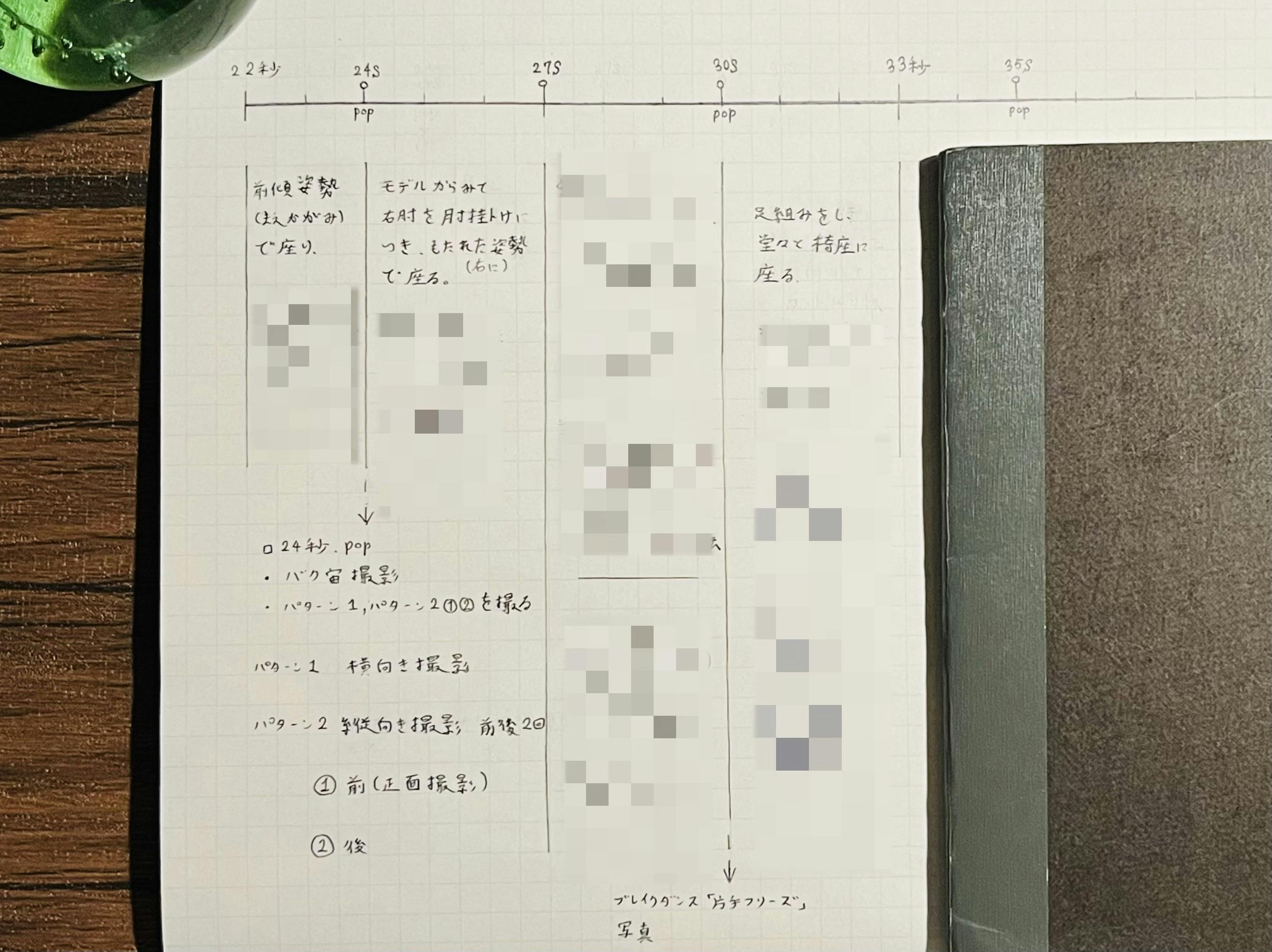 構成台本(下記参照/一部送付(モザイク有り))を作成し、