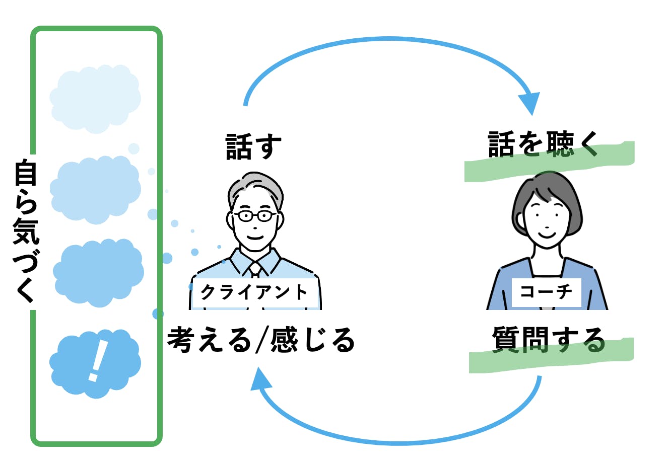 相手自らが気づくことを支援するコミュニケーション手法です。