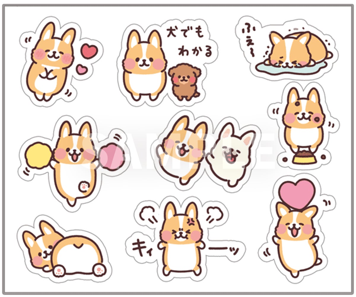 まるまるコーギーの愛らしい表情がいっぱい!お好きなところにペタペタ!