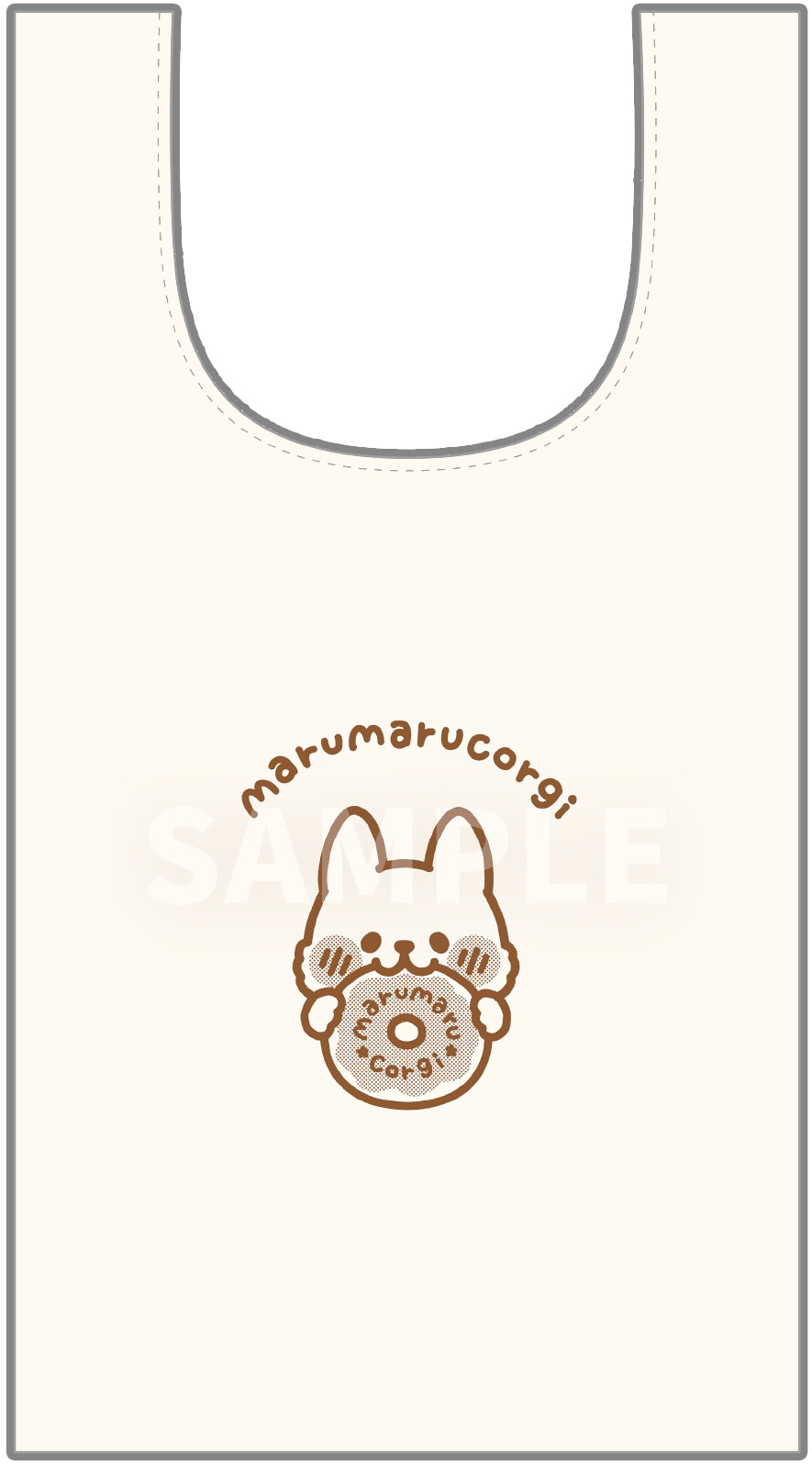 ちょっとしたお買い物に!ドーナツをかじるまるまるコーギーをあしらったコットン製のマルシェバッグ。サイズ:約W300xH380xD100mm(持ち手含むH550mm) 予定