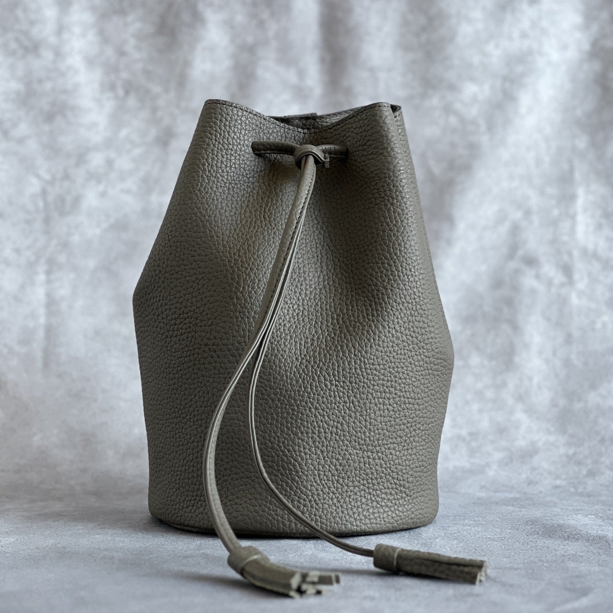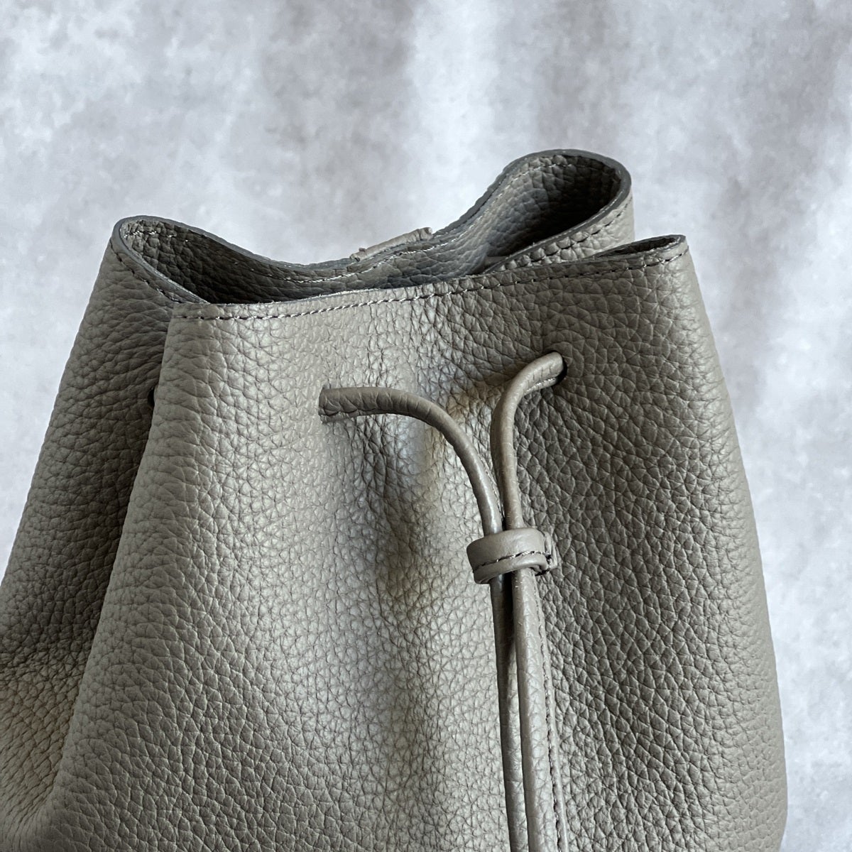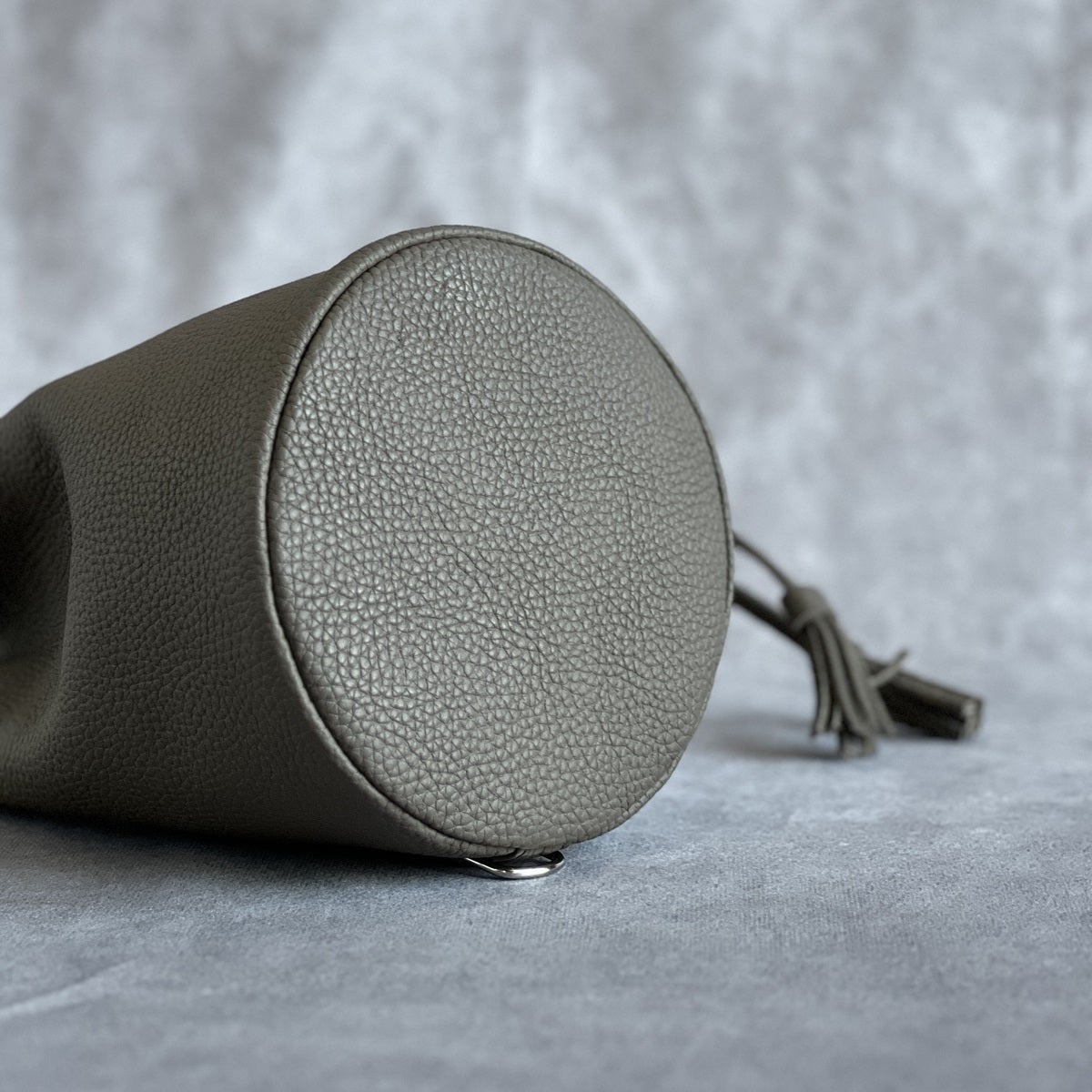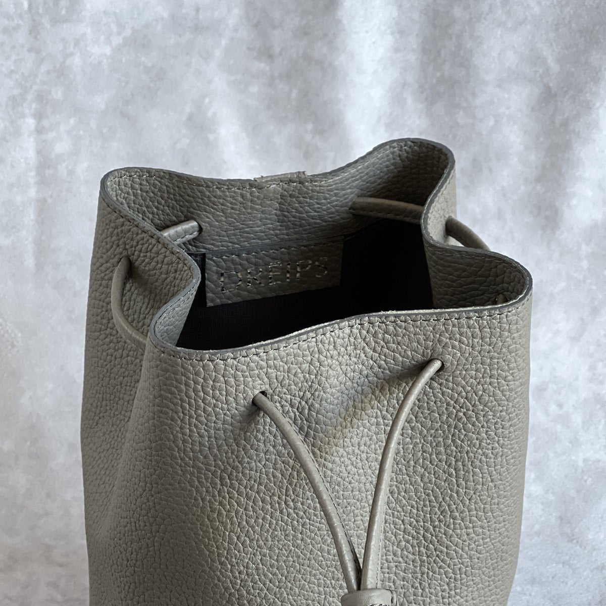 デザインは余計な装飾を省いた、ミニマムなボンサック(巾着)タイプの小型バックです。