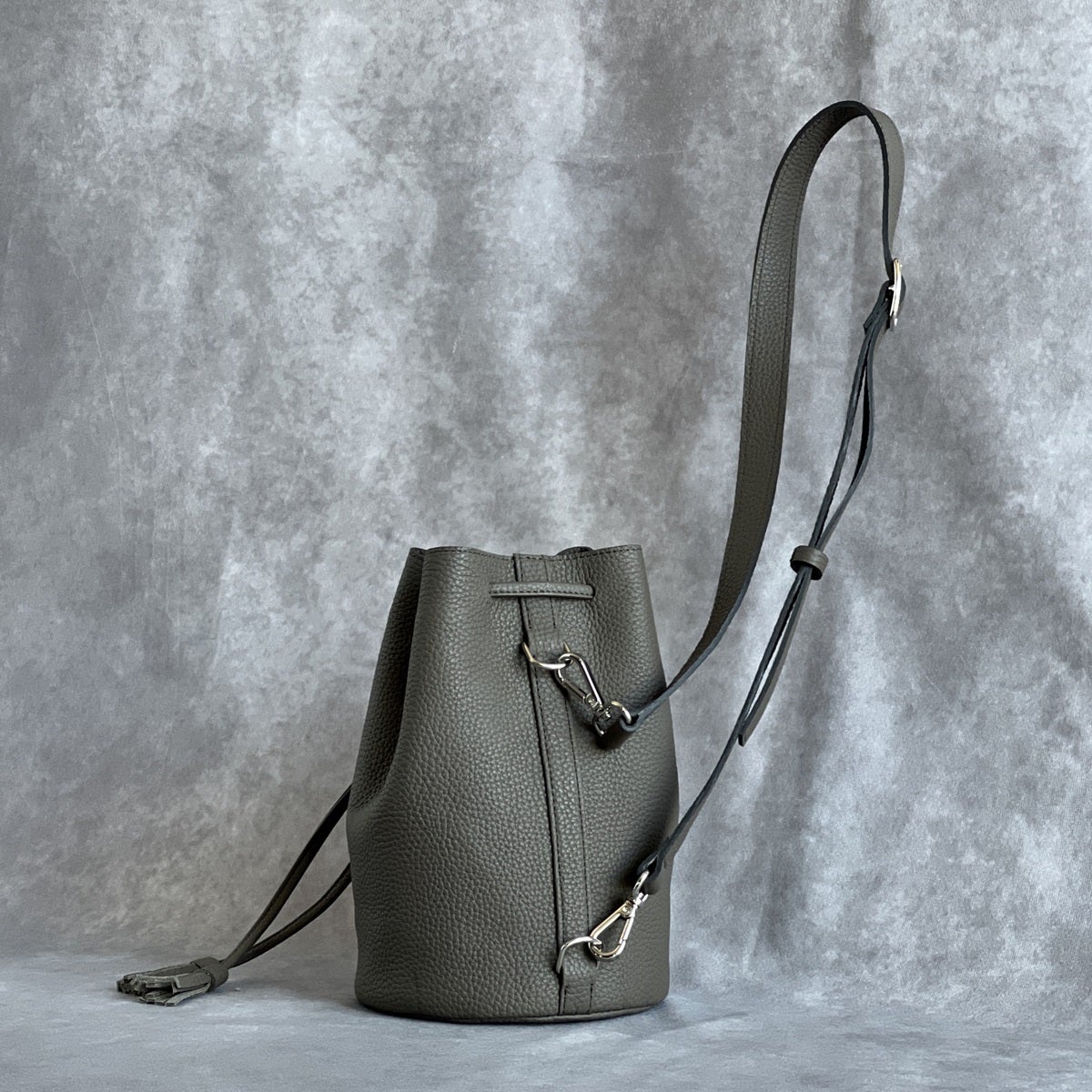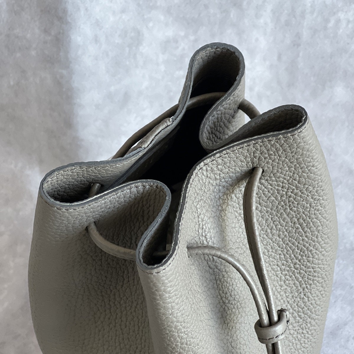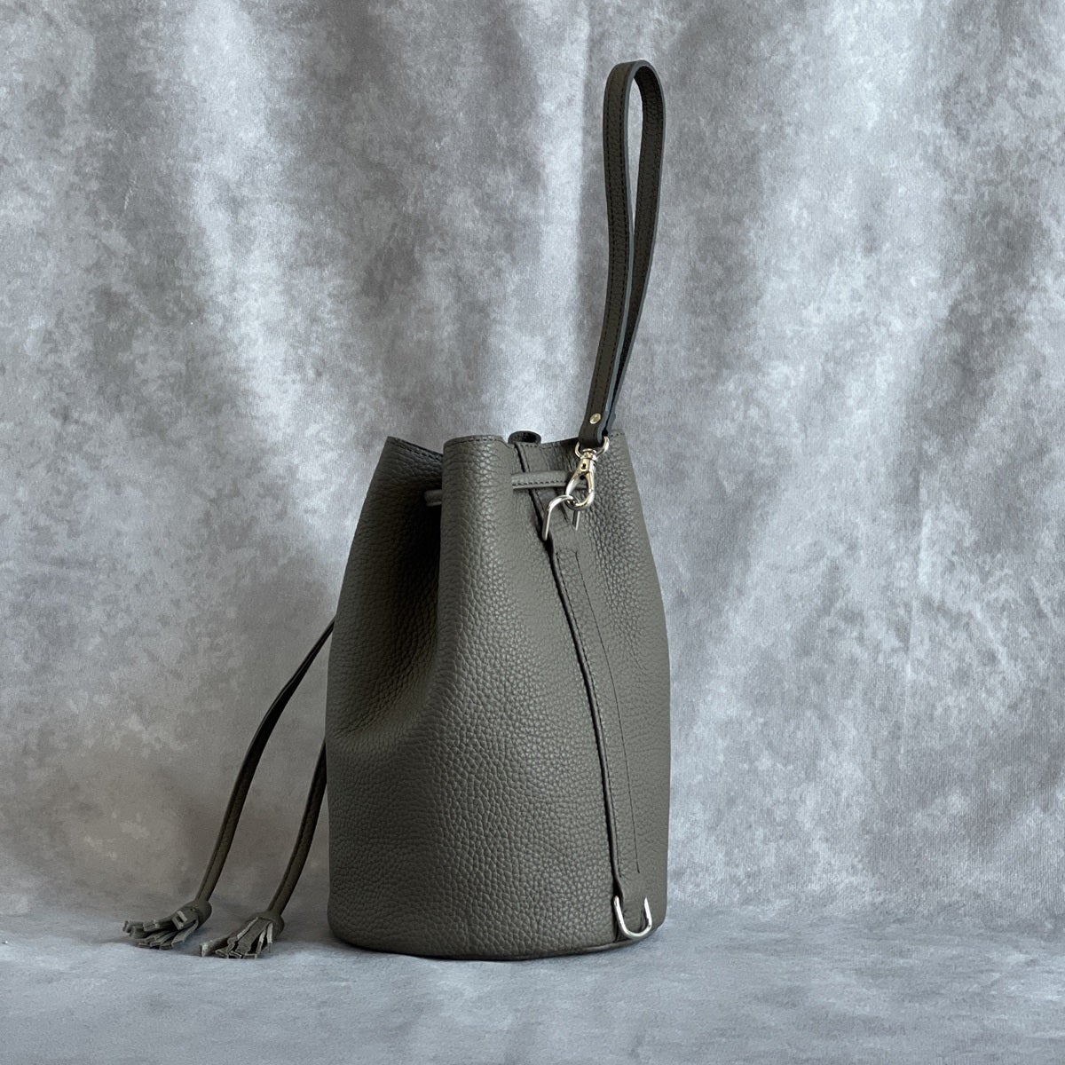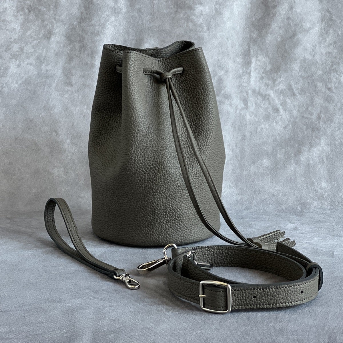 デザインは余計な装飾を省いた、ミニマムなボンサック(巾着)タイプの小型バックです。