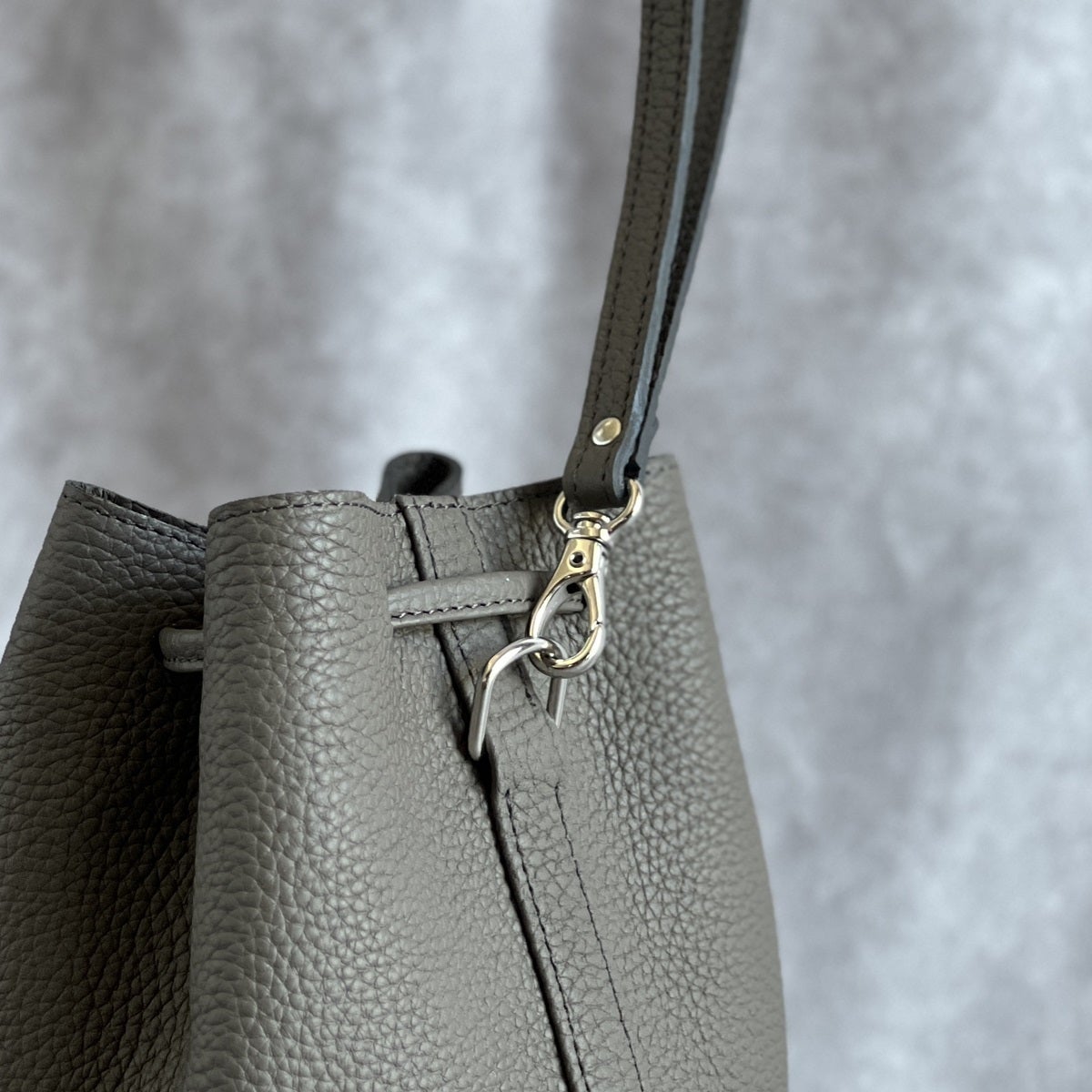 通常はレザーストラップを用いて手首に下げる形でご利用頂くことを想定していますが、付属のショルダーストラップに付け替えることで小型のショルダーバッグとしてもご利用可能です。