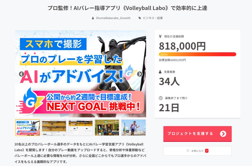 こんにちは!Growith代表の渡辺です。改めて、AIバレー学習支援アプリvolleyball laboクラウドファンディングへのご支援本当にありがとうございました!!多くの方々からご支援やご声援をいただき、改めてこのプロジェクトを行ってよかったと感じました。そして皆様からのご協力もあって無事アプリが完成しました!8月8日19時にサービスを正式リリースさせていただきます。おって、本プロジェクト返礼のご案内も合わせてご連絡をさせていただきます。引き続きよろしくお願い申し上げます。