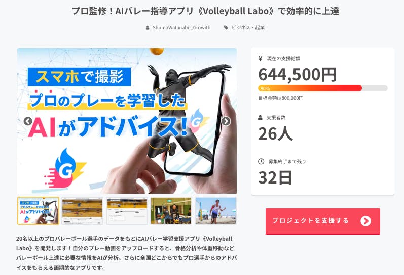 支援金額が目標の80%を達成しました!