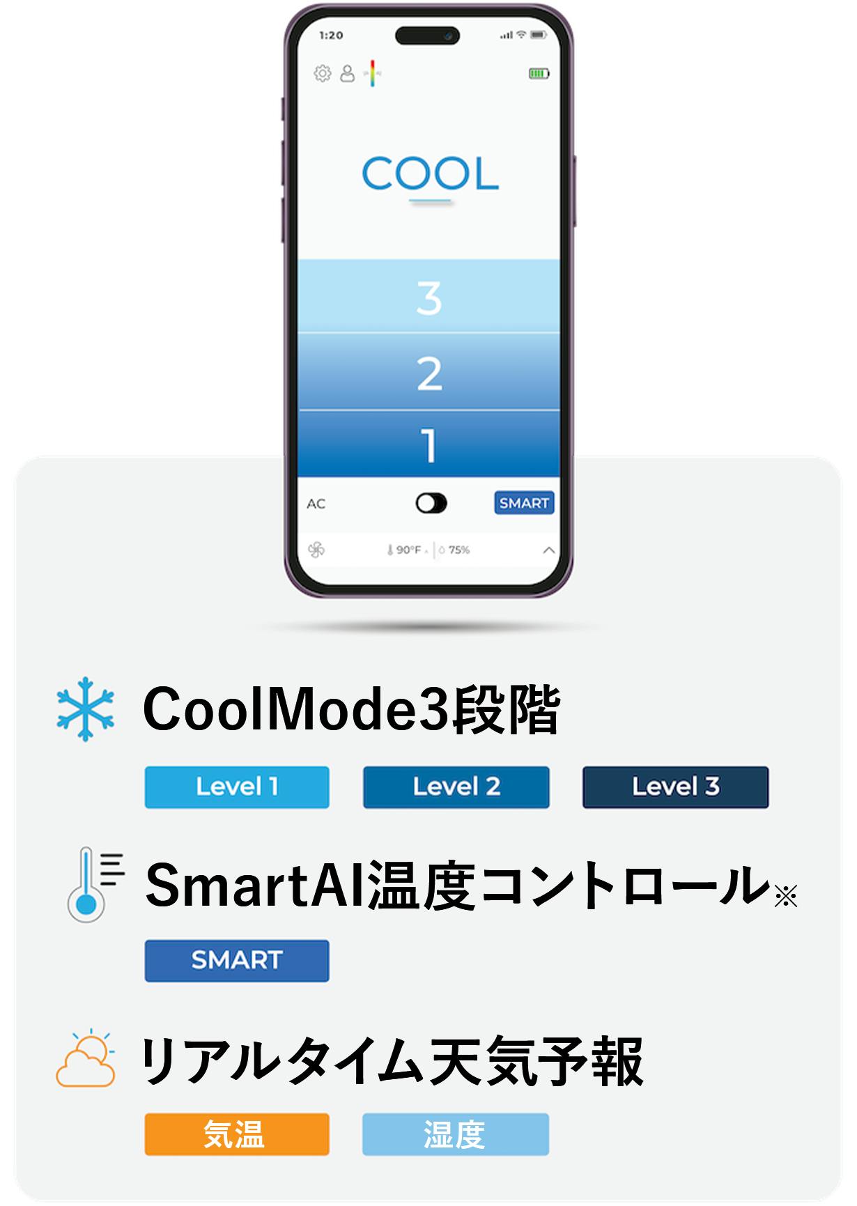 Smartモード※をオンにすれば、AIが現在の温度を自動検知し、最適な冷却レベルに自動調整します!