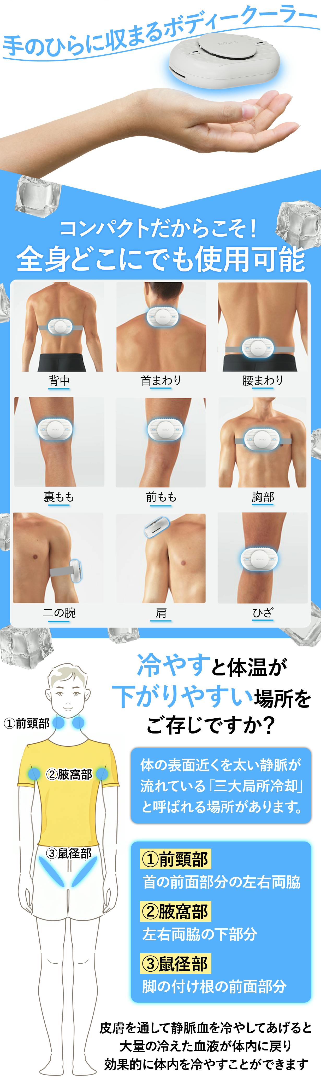 コンパクトサイズなので全身どこにでもフィットし、急速に冷却可能です。