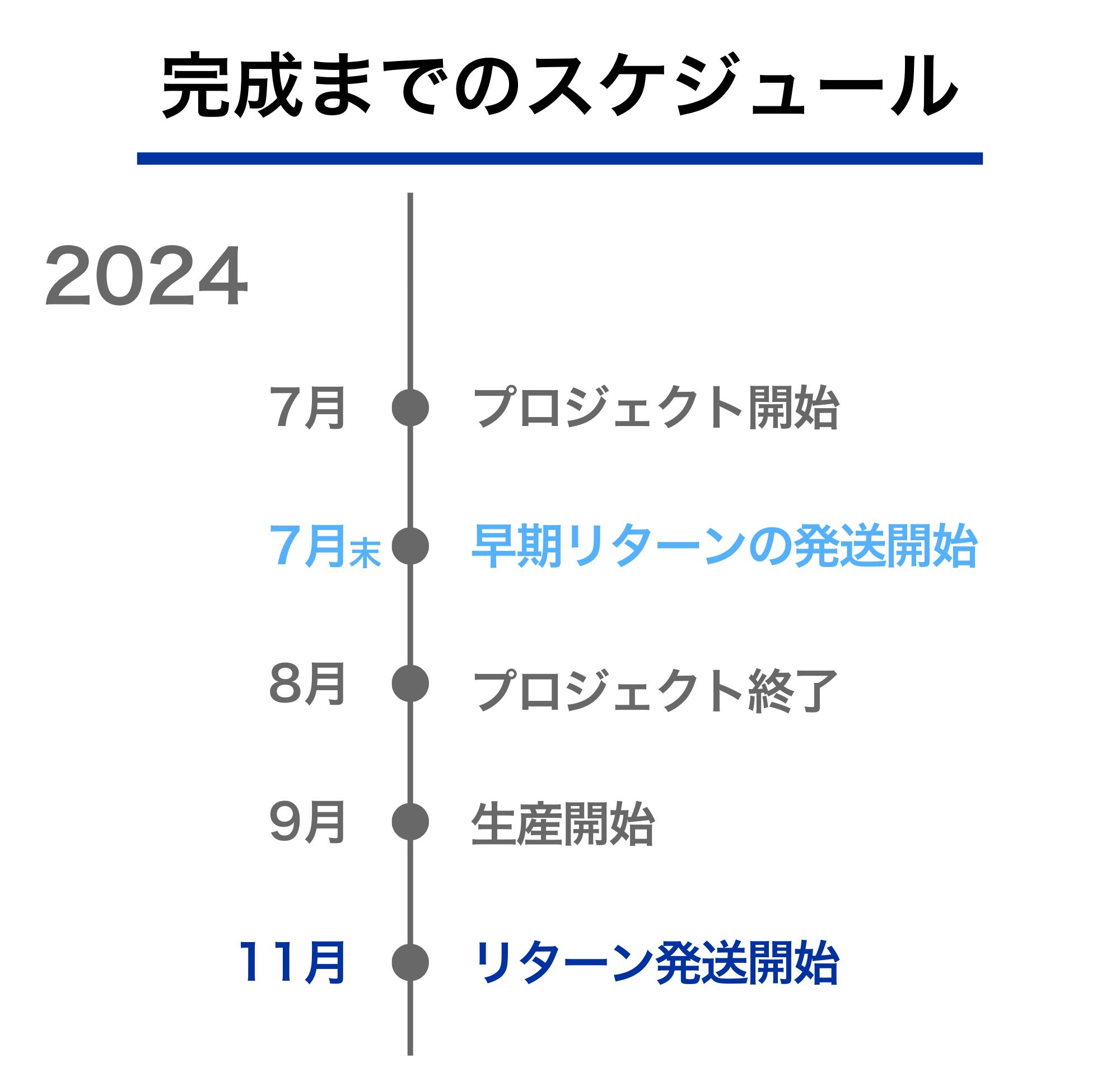 ※本文中に記載させていただいたスケジュールは、あくまでプロジェクト公開時点の予定です。クラウドファンディングを経て輸入を行う性質上、配送遅延のおそれがございます。