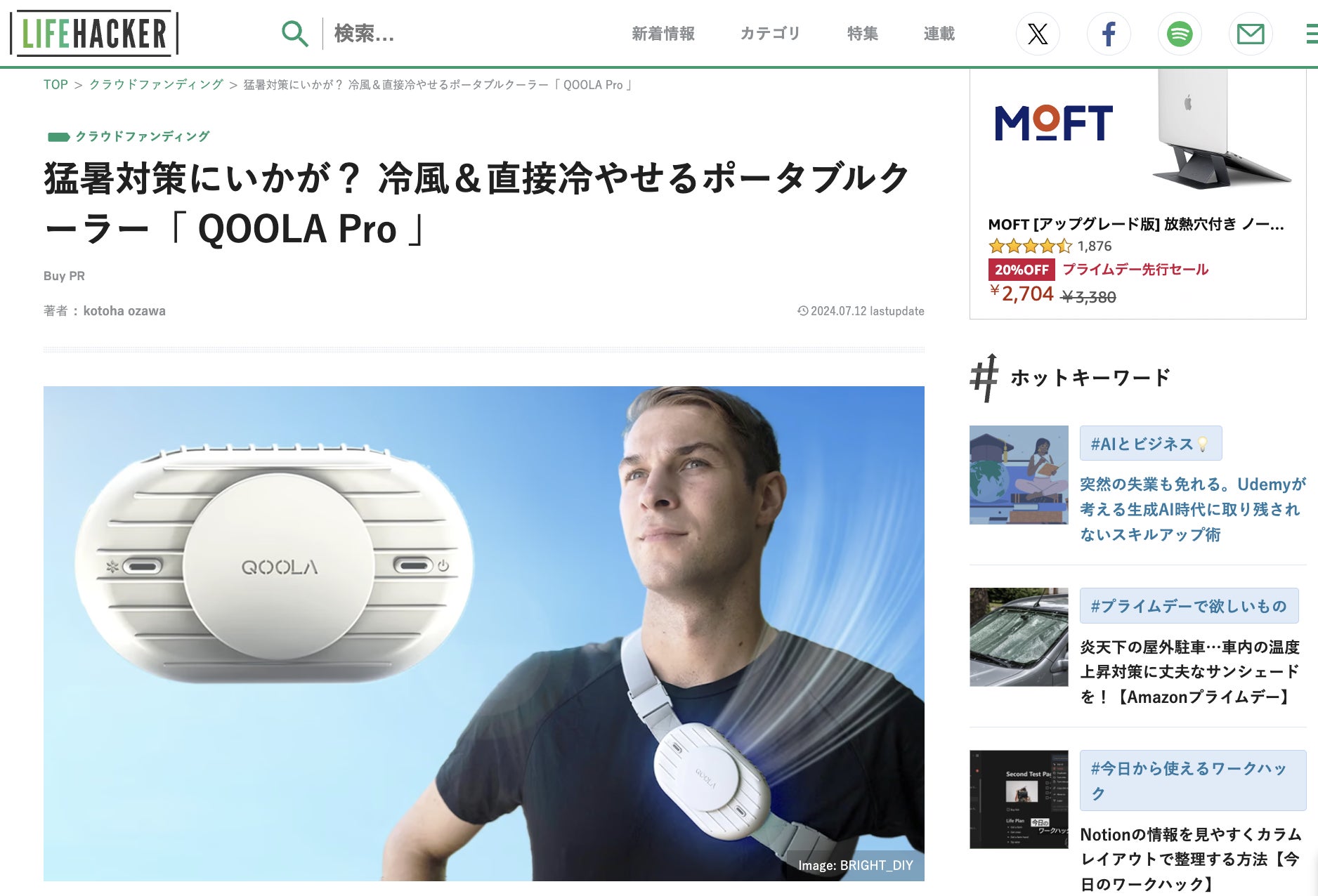 昨日、Lifehackerでポータブルクーラー「 QOOLA Pro 」を紹介して頂きました。