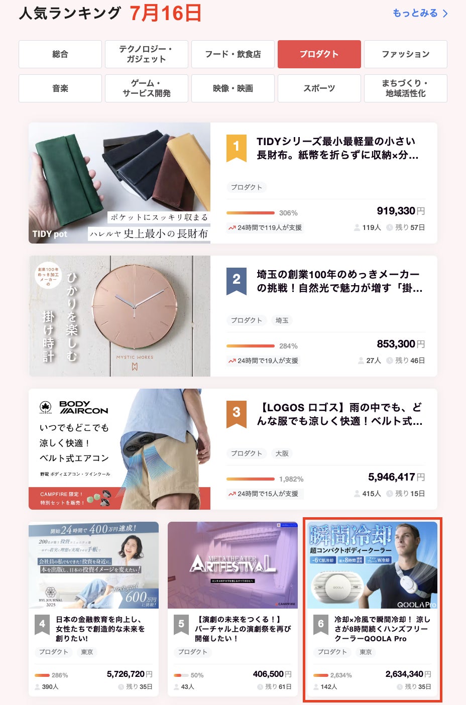 また、本日の人気ランキングプロジェクト部門で6位に入賞することが出来ました!