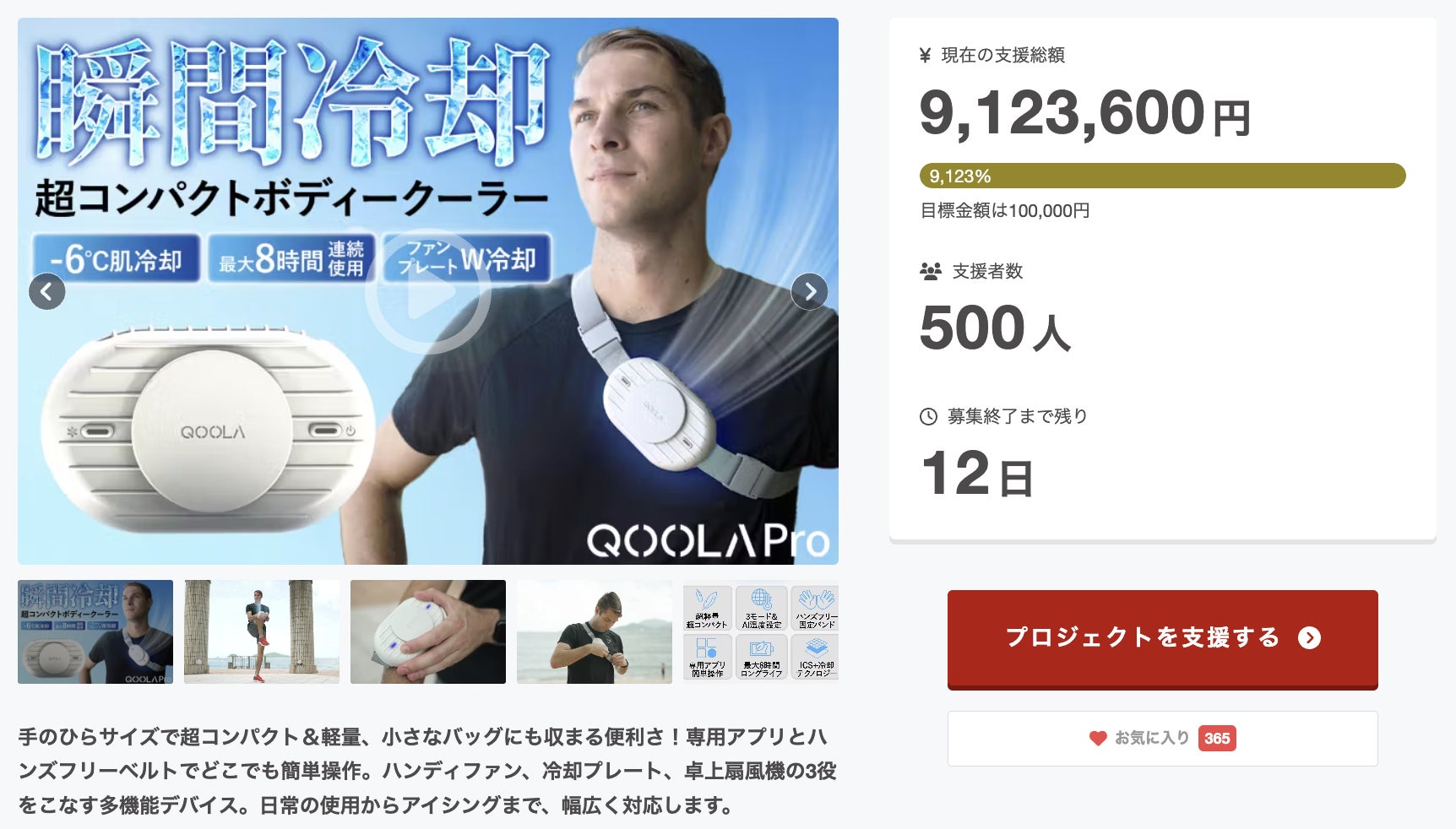 この度は「冷却×冷風で瞬間冷却! 涼しさが8時間続くハンズフリークーラーQOOLA Pro」に支援頂き誠にありがとうございます!