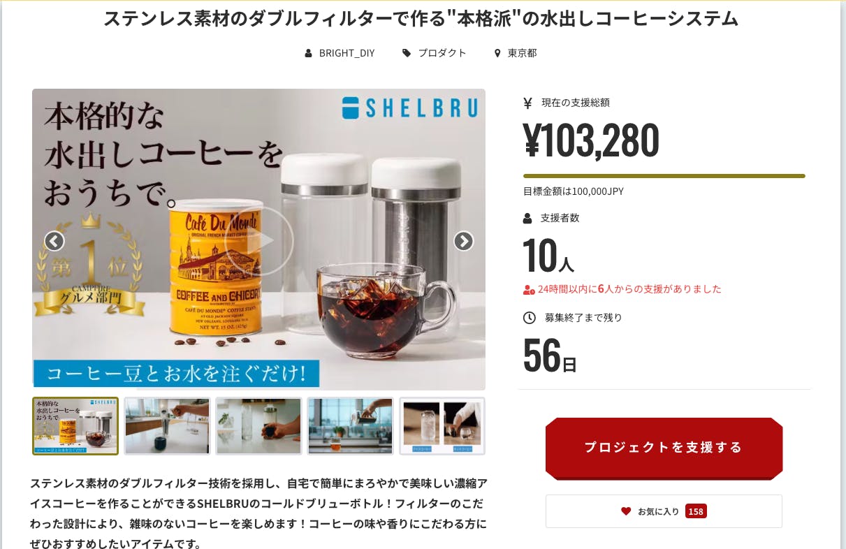 皆様、こんばんは!Brightチームです。コーヒー好きなら誰もが一度は耳にしたことがある「水出しコーヒー」。そのまろやかさと深い味わいは、多くの人々を魅了して止まない。しかし、その製法は一見複雑で手間がかかるように思われがち。そんな中、SHELBRUのCOLD BREW SYSTEM PROが登場し、水出しコーヒー作りの常識を変えようとしています。SHELBRUの最大の特徴は、何と言ってもそのダブルフィルター技術。これにより、自宅で簡単に、かつ連続して、まろやかな美味しいコーヒーを作ることが可能になりました。操作は非常にシンプルで、挽いたコーヒー豆と水をセットしておくだけ。特別な技術や知識がなくても、誰でも簡単に扱えるのが大きな魅力です。従来の水出しコーヒー製品とは異なり、SHELBRUでは完成したコーヒーの原液を蓋を変えるだけで簡単に注ぐことができます。これにより、使用後すぐに次のコーヒーを準備することが可能となり、忙しい朝や来客時でも、新鮮な水出しコーヒーを提供できます。SHELBRUが推奨する製法では、粗挽きまたは中粗挽きのコーヒー豆と水を混ぜて、1日冷蔵または常温で保存。12時間から24時間後には、500mlのコーヒーの原液が出来上がり、この原液を10倍に薄めることで、美味しいアイスコーヒーでもホットコーヒーでもお楽しみいただけます。SHELBRUは、その使いやすさ、便利さ、そして何よりもその美味しさで、自宅でのコーヒータイムを特別なものに変えてくれるでしょう。水出しコーヒー特有のまろやかさと深い味わいを、ぜひ自宅で手軽に体験してみてください。これからのコーヒータイムが、もっと楽しみになるはずです。以上、Brightチームでした!ご興味のある方はこの機会をお見逃しなく!https://camp-fire.jp/projects/view/760932Brightチームは、当プロジェクトをもっと多くの方に知っていただきたいと考えております。よかったら、FacebookやTwitter等のSNSでのシェア・拡散をお願い致します。#shelbru_japan #coldbrewsystempro #brightdiyどうぞよろしくお願い致します。Brightチーム