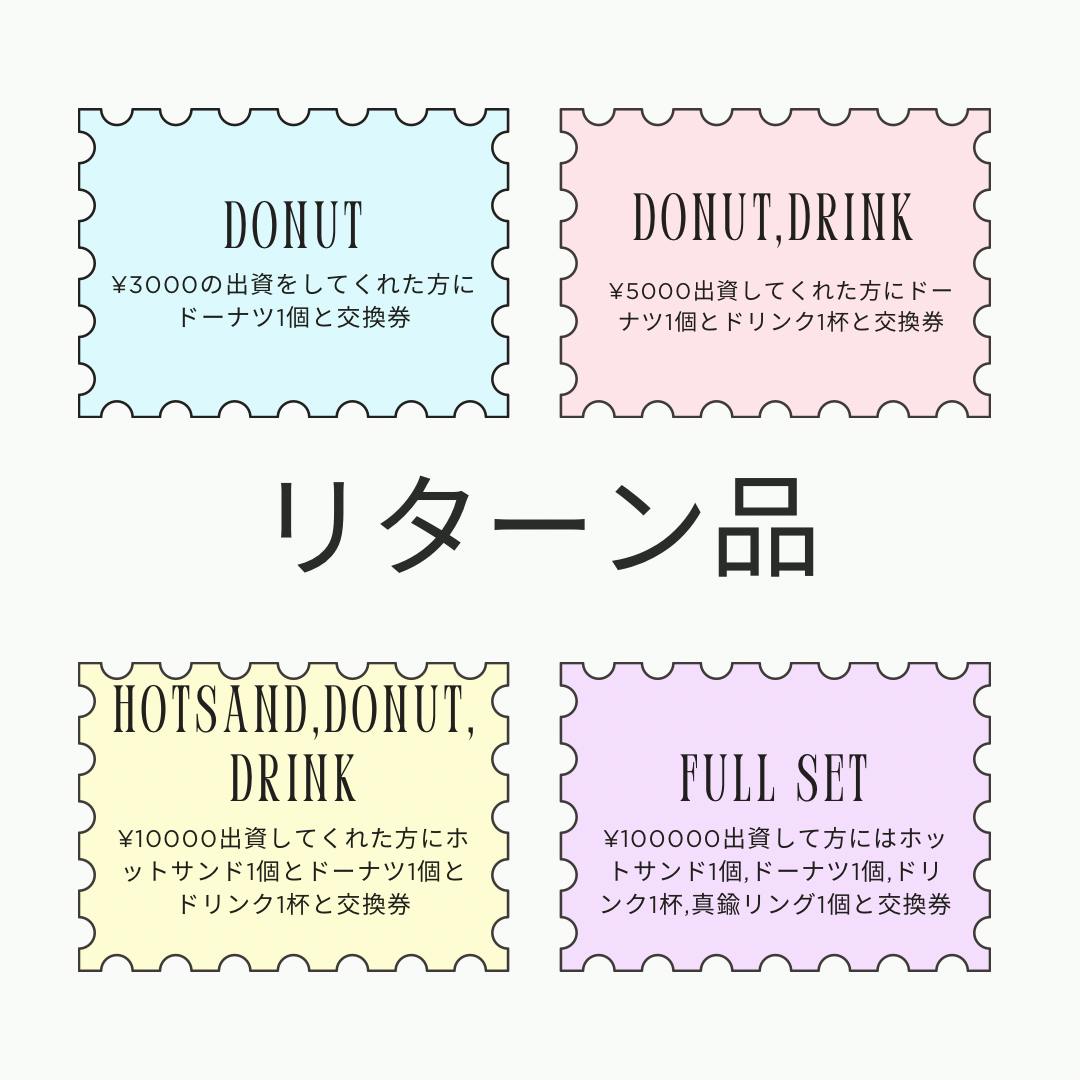 1万円→(ホットサンド1個+ドーナツ1個+ドリンク1杯)交換券🎫+お礼のメール✉️