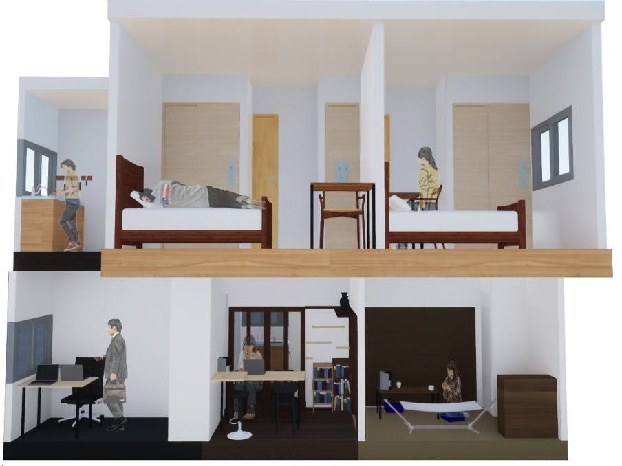 コワーキングスペース部分では学生と社会人がミックスされる空間を想像し、新たなつながりや新たな企画の創出を目指します!!