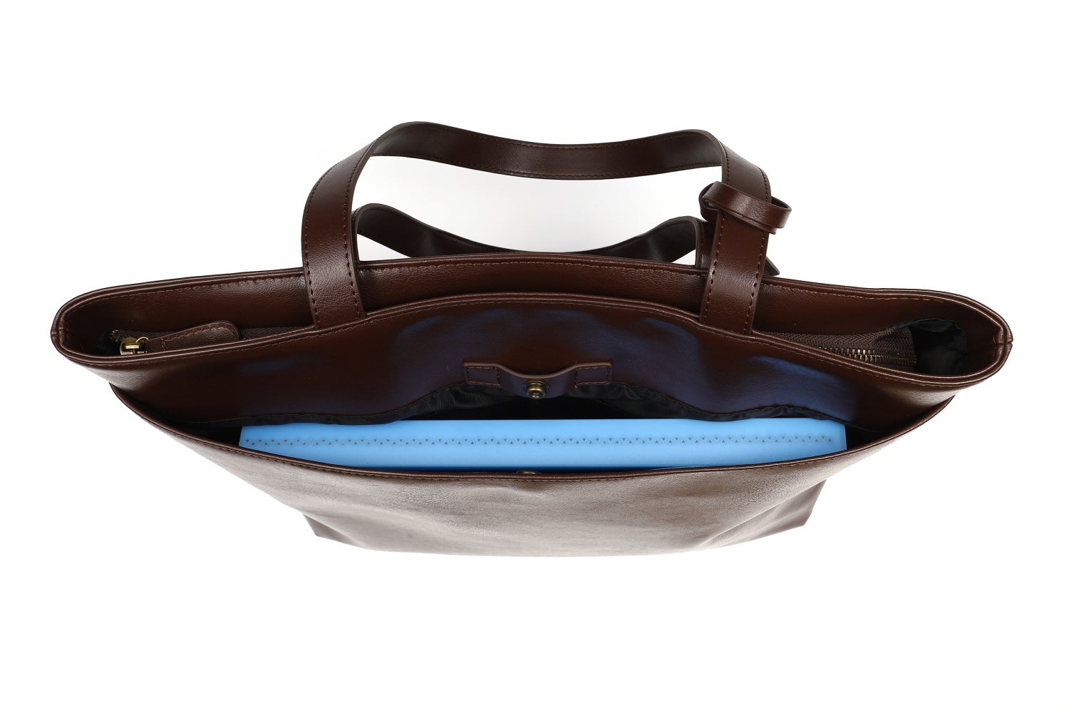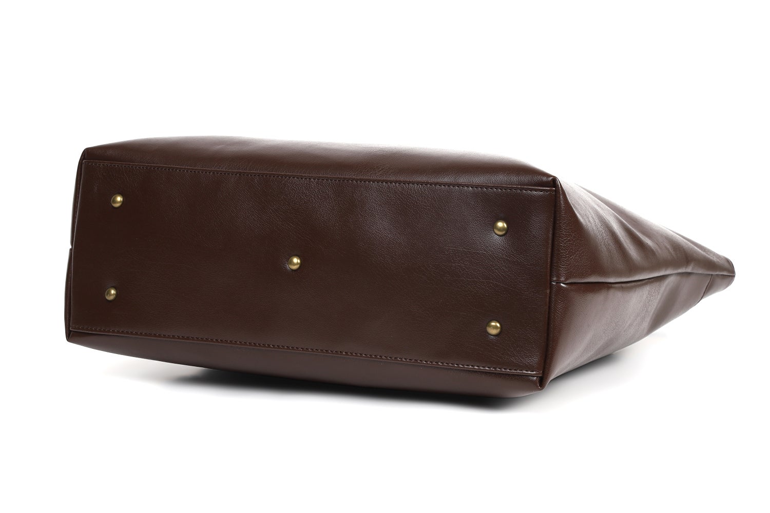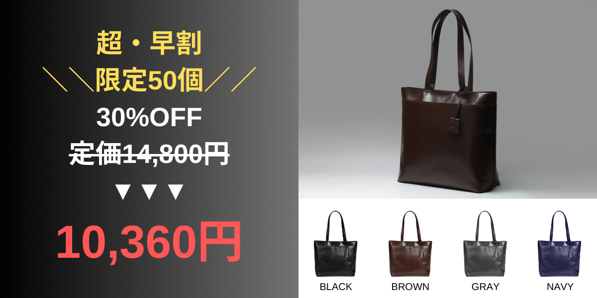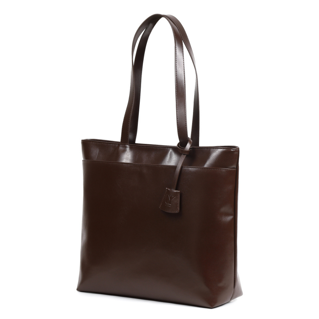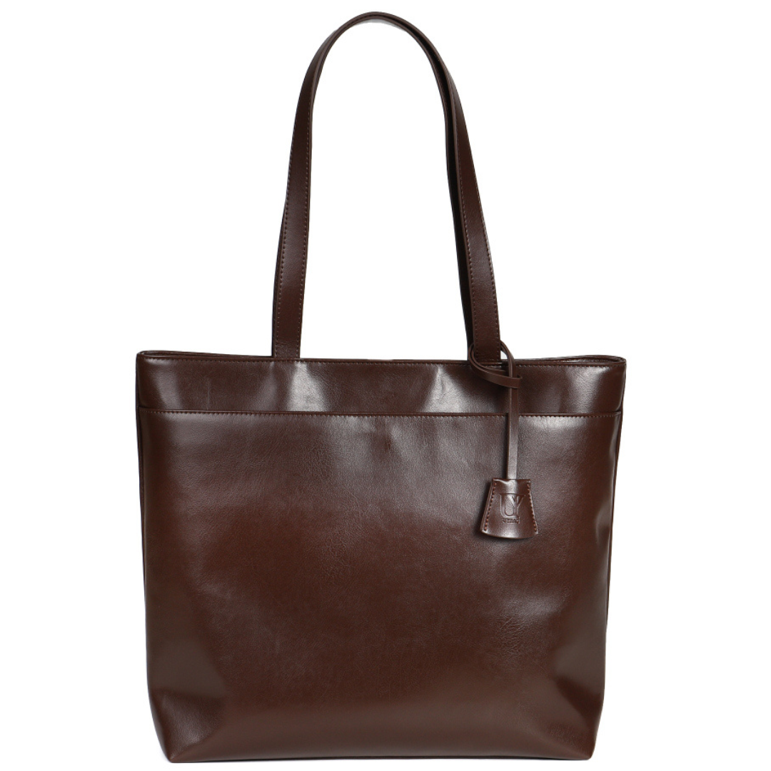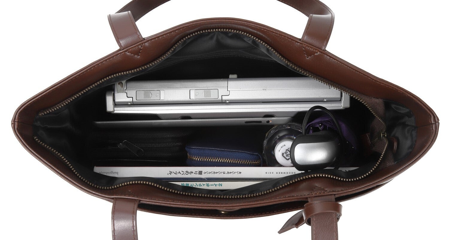 トートバッグありがとうございました。この価格でこのクオリティにびっくりです。皮でありながら軽くて光沢もあるので高級感もありました。また持ち手も長めなので冬場はコートを着てても、楽に肩掛けが出来ますし、持ち手が柔らかいので肩からずり落ち難いのもとても良いと思いました。本当に良い買い物をさせてもらったと思います。強いて言うなら私が小柄なせいか、手で持って坂道や階段を歩くと地面に擦ってしまいます。また電車で膝の上に乗せると高さがあるので乗せ難いので、高さが33センチではなく29センチぐらいになると良いと思いました。この高さでも書類やPCなどを入れても充分な大きさだと思います。