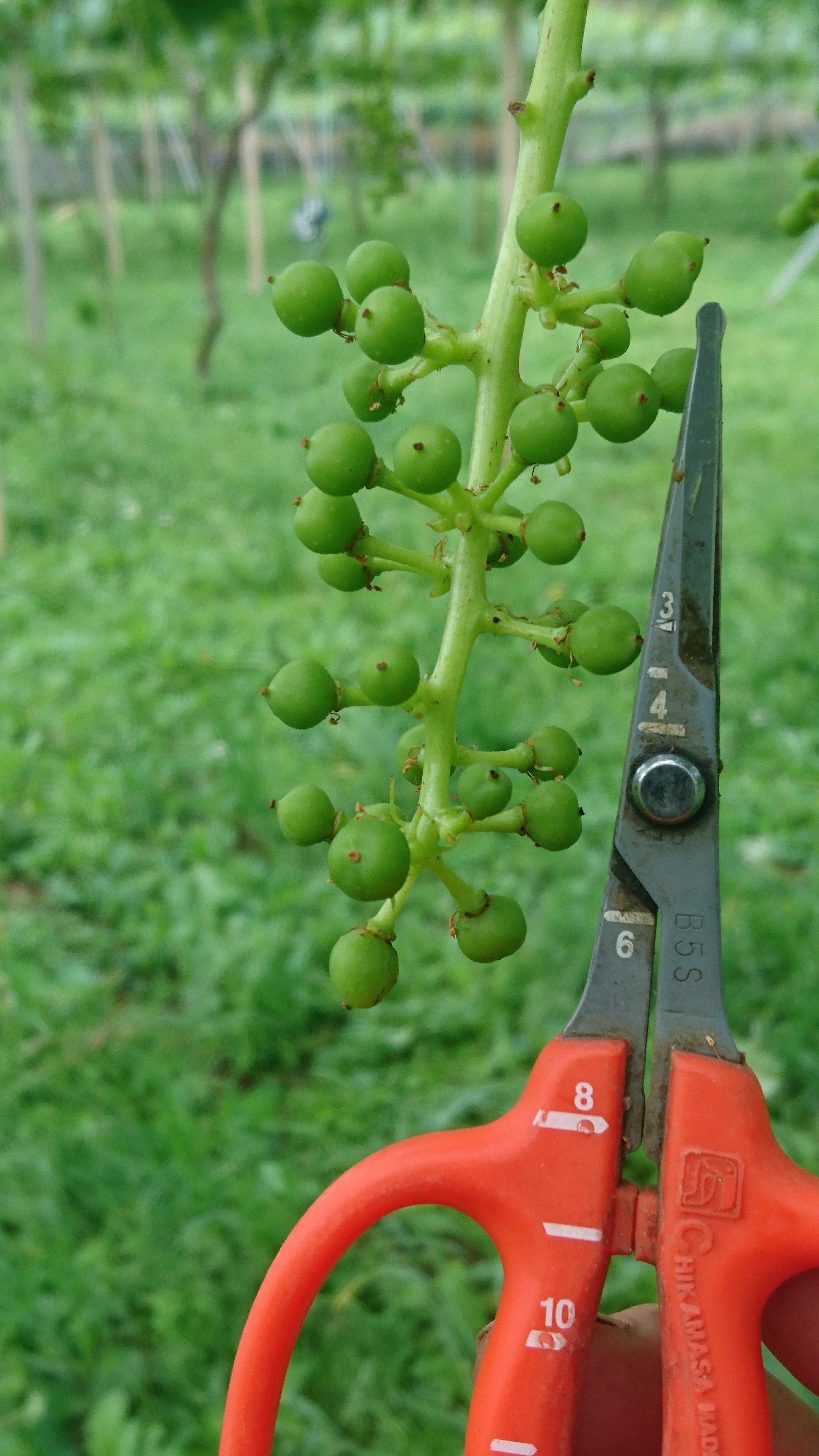 1房約70粒から35粒にする摘粒作業です。もちろん手作業です。