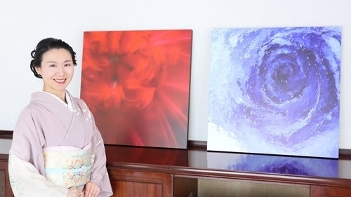 作品は、準優秀賞を受賞した作品の青の「ブルーローズ〜可能性は無限大〜」そして、赤の「彼岸花〜幽玄の花舞~」