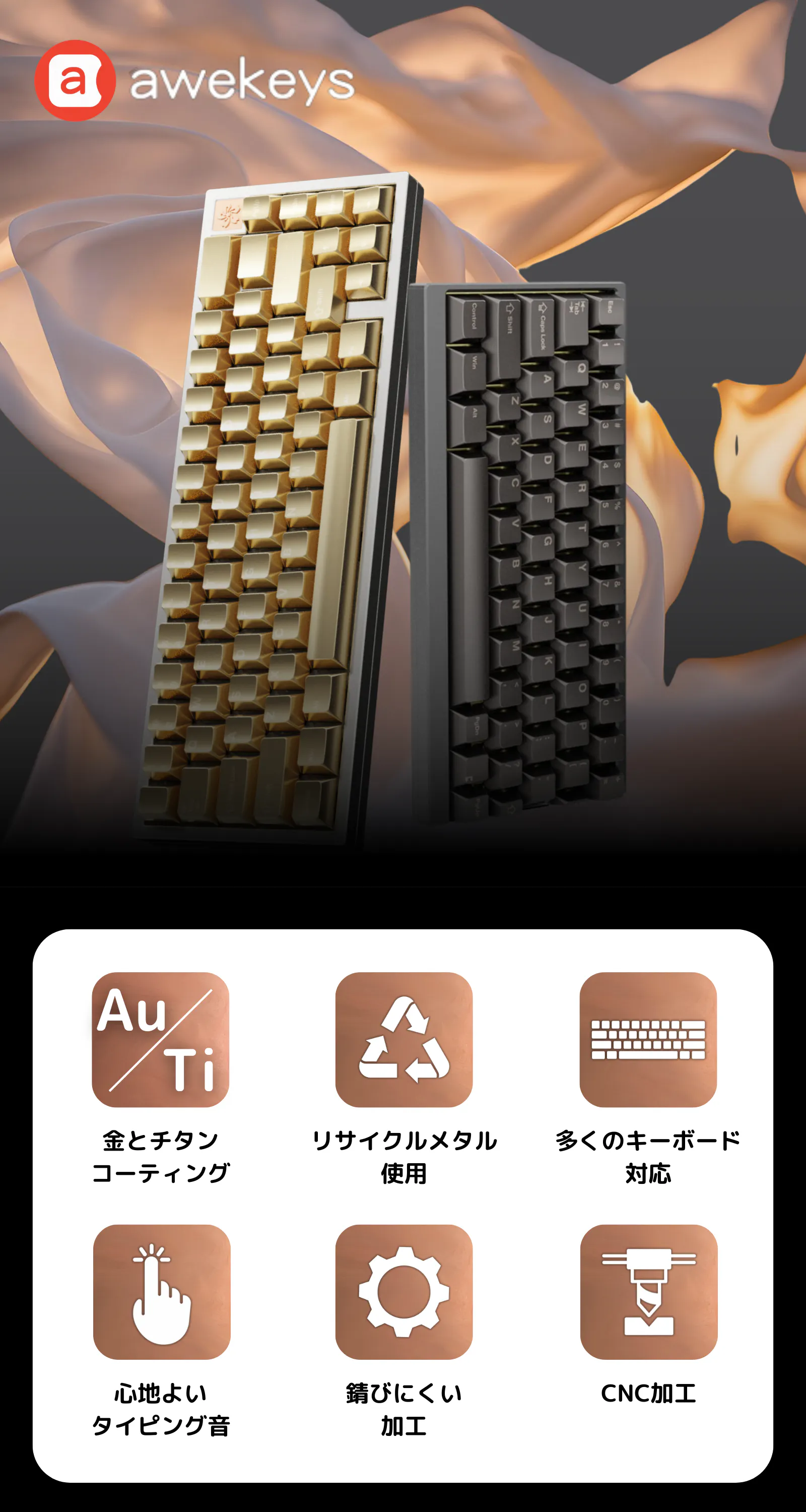 海外クラウドファンディングで約1,700人から5,600万円を調達し、世界中のタイピング愛好家を魅了した完全メタル製キーキャップ「Awekeys」。