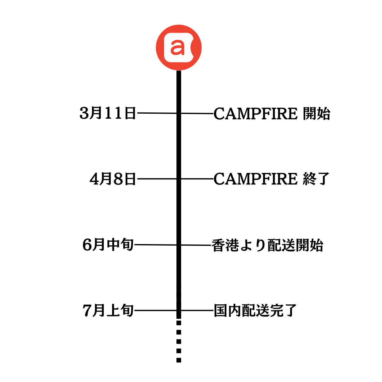 4月8日にCAMPFIREが終了し、5月末に製造に入ります。通常40日程度で製造が完了し、発送を始めます。そのため6月中旬に香港から発送され、7月上旬には皆様のお手元に届きます。