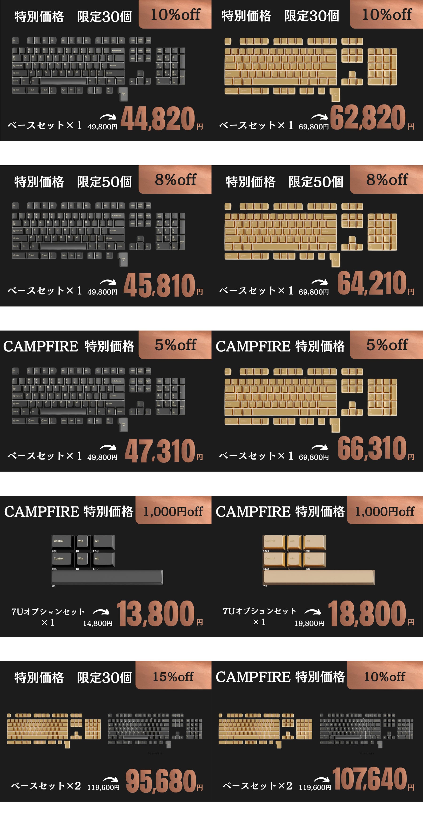 2025/04/01 21:00こんにちは、Awekeys Japanです。CAMPFIREでのフルメタルキーキャッププロジェクトも、いよいよ残り7日となりました。お気に入り登録や応援コメントなど、日々たくさんの反応をいただき、本当にありがとうございます。■ 購入を迷っている方へ「気になっているけど、最後まで様子を見ようと思っている」そんな方にも、ぜひお伝えしたいことがあります。今回のプロジェクトは、CAMPFIRE限定の先行予約販売です。一般販売の予定は現時点では未定で、お得に購入できる最後のチャンスになる可能性もございます。■ 想像以上の体験が、手元から始まる✔ 打鍵感が変わる✔ 音に深みが出る✔ 手元を見るたび気分が上がる「キーキャップって、ここまで変わるのか」そう思っていただけるように、素材・形状・仕上げのすべてにこだわりました。重さが生む安定感、金属が生む質感、仕上げが生む美しさ。タイピングするたびに、満足感が積み重なっていく――そんなプロダクトに仕上がりました。ご検討中の方は、この機会をぜひお見逃しなく。ご不明点があれば、お気軽にご相談くださいね!Awekeys Japan もっと見る