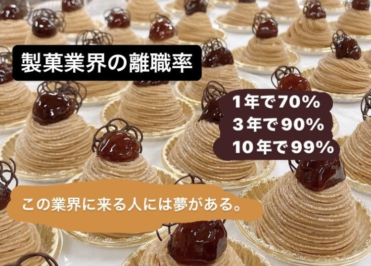 このように検索すると製菓業界の離職率の記事が出てきます。内容は「離職率 1年以内70%、3年以内90%、10年以内99%」といったものです。たしかにこの業界は厳しいと言われています。ですがこの数値は異常なのです。この業界に入ってくる人はみんな何かしらの目的や夢を持って、入社や入学をするのです。