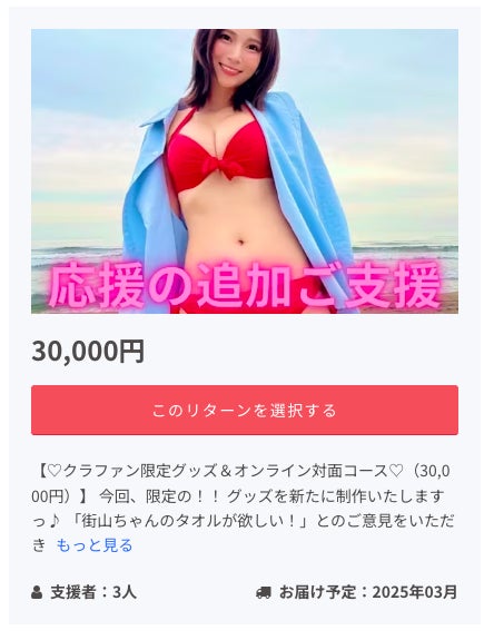 昨日から解禁となったこちらの【応援の追加ご支援】