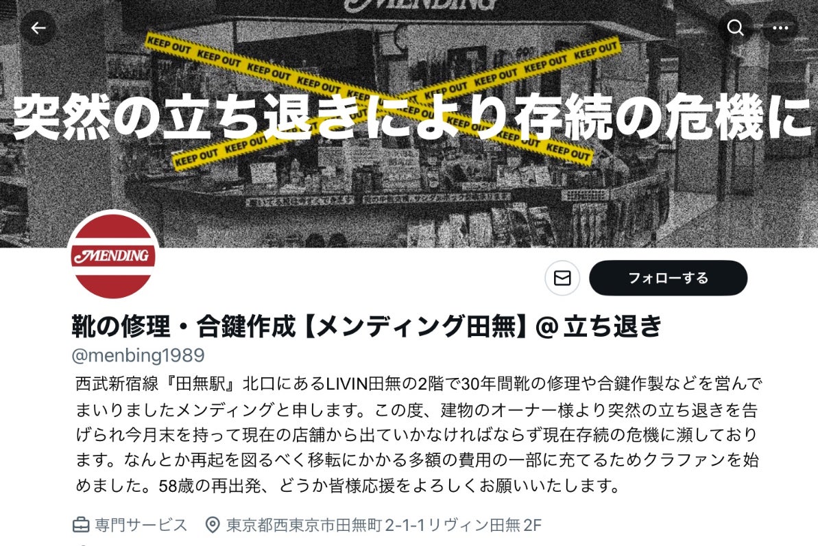 家主からフロア全体を他の業者に一括貸しする予定との説明があり、30年にわたり営業してきた修理屋メンディングを閉店もしくは移転せざるを得なくなったのです。