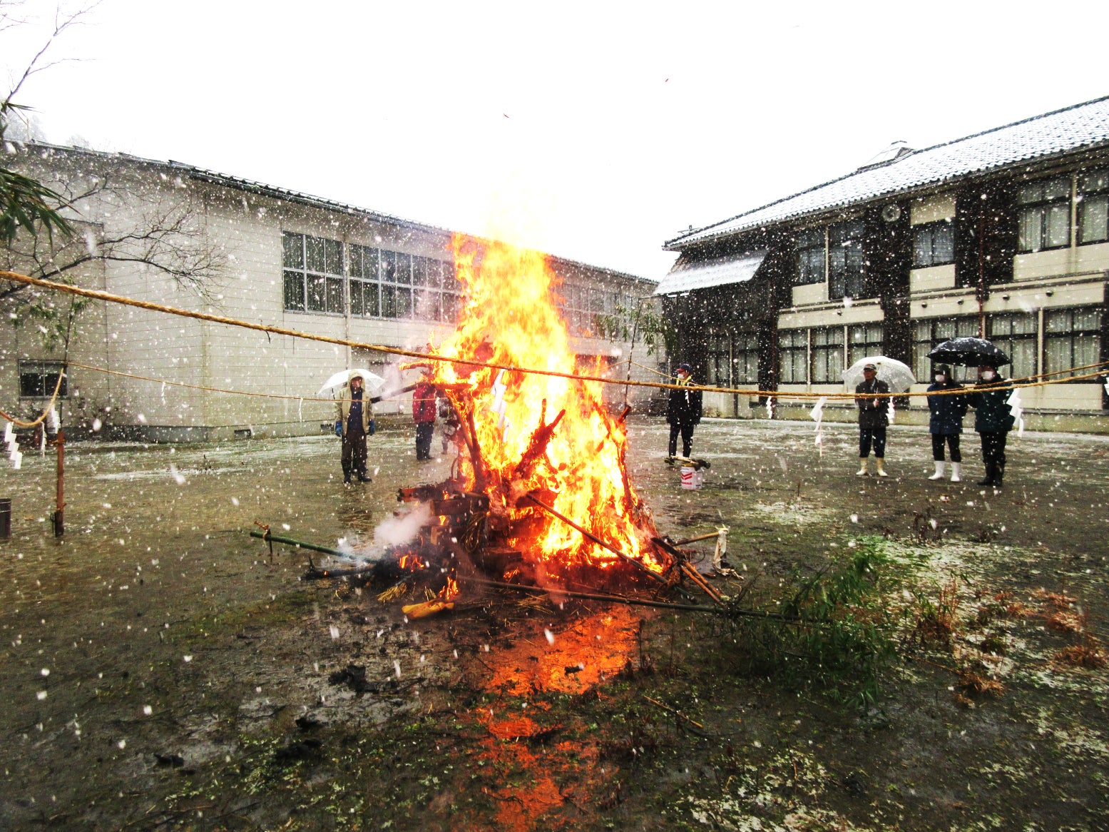 生憎の天気だったので、区民の皆さんは旧久江校舎(画像右)の中から見学しています。