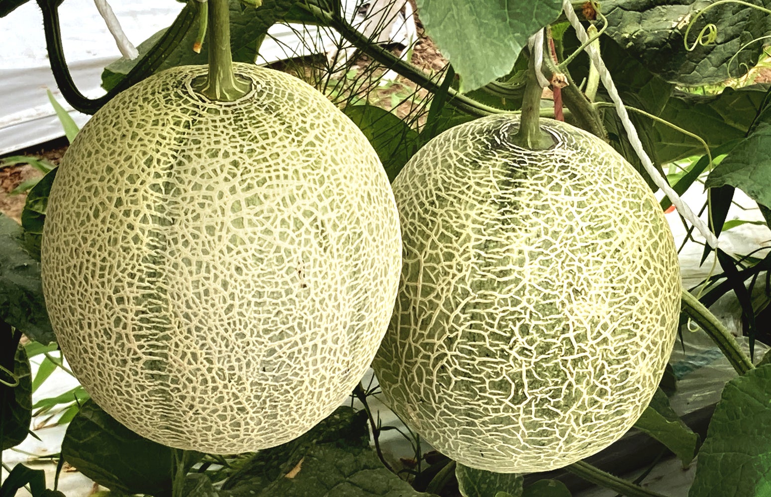 熟練指導員の元で1本1本丁寧に栽培し、1株に1個だけ実をつけ収穫します。糖度15度以上と大変甘く、とても大きく育ち、特別出来の良いものは神社に奉納されます。