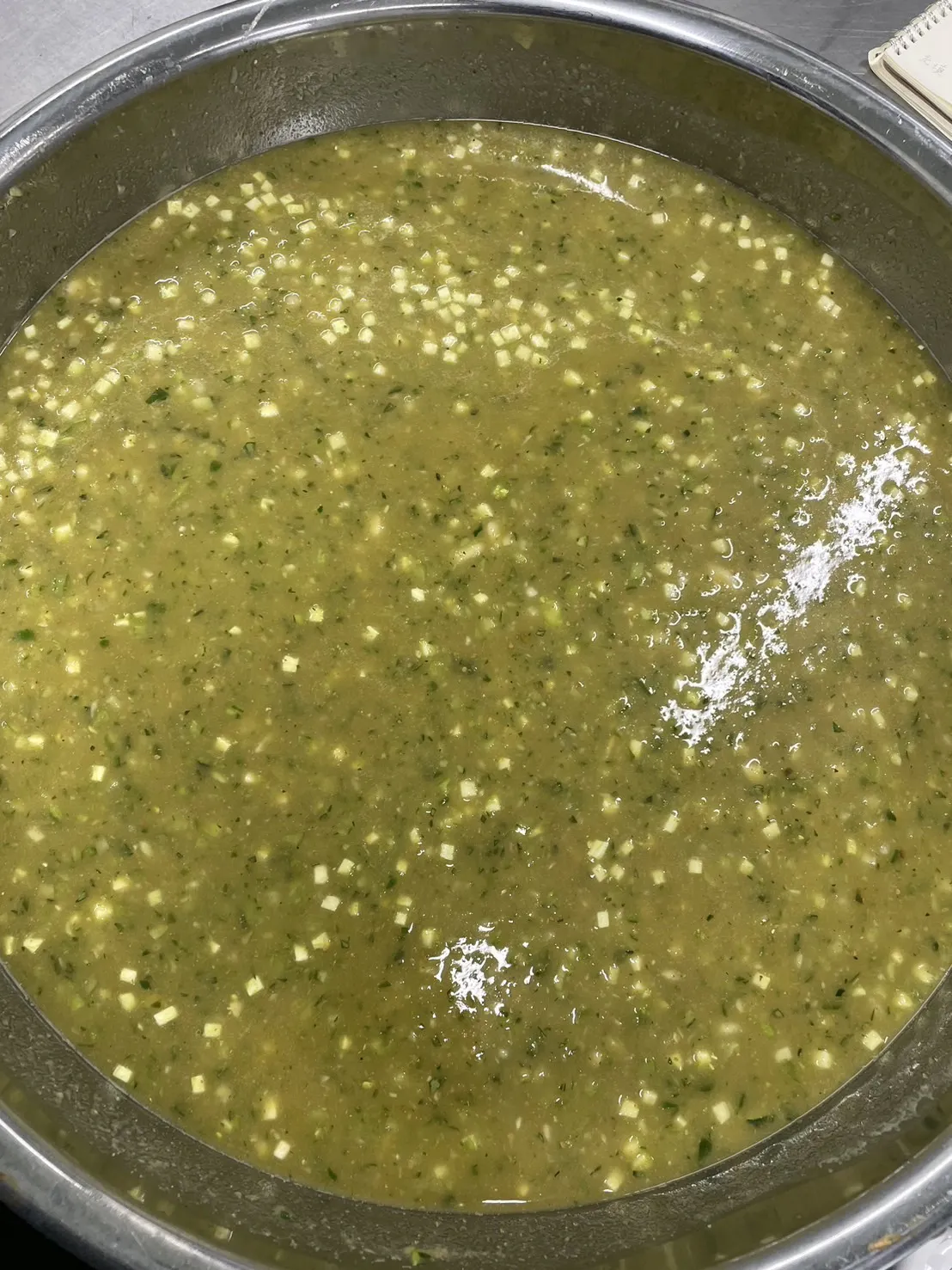 スープはガスパチョ仕立てなので、それって簡単にできるでしょ!?いえいえ、たけたの中でも元気溢れるトマトたちなので気合いをいれて望みました!このスープ、こんな風に作られます。