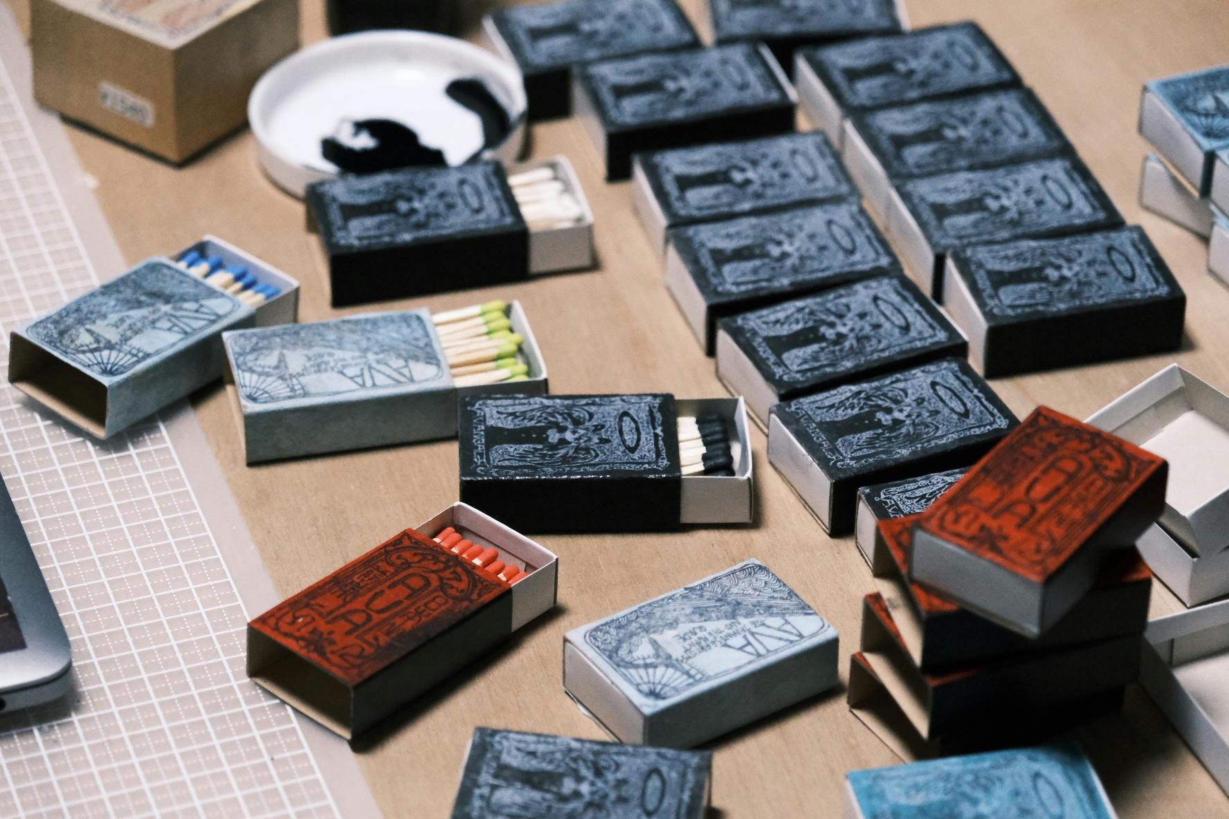 このマッチは4種類の版をつくり、ひとつひとつ手摺りで制作されました!