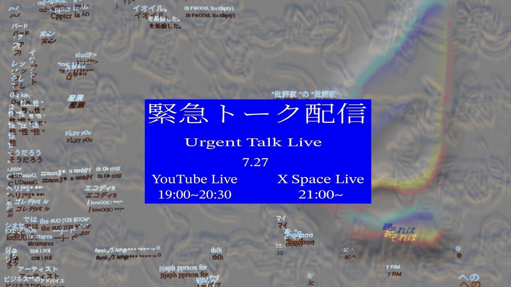【緊急開催決定!】AVA初の機関誌の発刊を記念して、ライブトークイベントを開催します!登壇者は機関誌制作に特に関わったAVA一期メンバーの坂下剣盟、朝倉市、葉子の3名。ゲストに小説家・新胡桃さんをお迎えし、プロジェクトの背景や機関誌制作の裏話、そしてそれぞれの最近の関心事について語り合います!配信日時:7月10日(木)18:00〜19:00配信場所:YouTube Live AVAアカウントから(リンクは当日SNSにて共有)▼AVA YouTubeアカウントはこちらhttps://youtube.com/@space_ava_ars?si=q9wI2HubR7dh0hEl ▼AVA Xhttps://x.com/space_ava_ars?fbclid=PAQ0xDSwLPnDJleHRuA2FlbQIxMQABp33TVRHsZWWh_FCvi2uDLLRvo_NKdo16T2U66sSLPQ8k0_vB3NQs4fBthV6E_aem_w_BENCHf2v3wIRLYWyn_7g▼AVA Instagramhttps://www.instagram.com/space_ava_ars?igsh=MXViaTFnd2d0aGY1Mg%3D%3D&utm_source=qr【トークプログラム】1.自己紹介2.機関誌発刊についてのご報告3.制作秘話やプロジェクトの背景4.最近の関心テーマや注目している作品・展覧会などの紹介美術・文化・制作に関心のある方、ぜひご視聴ください!