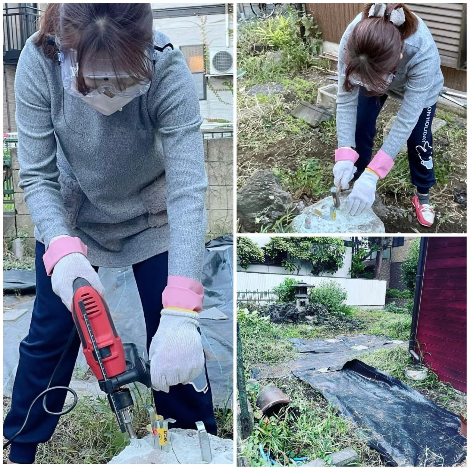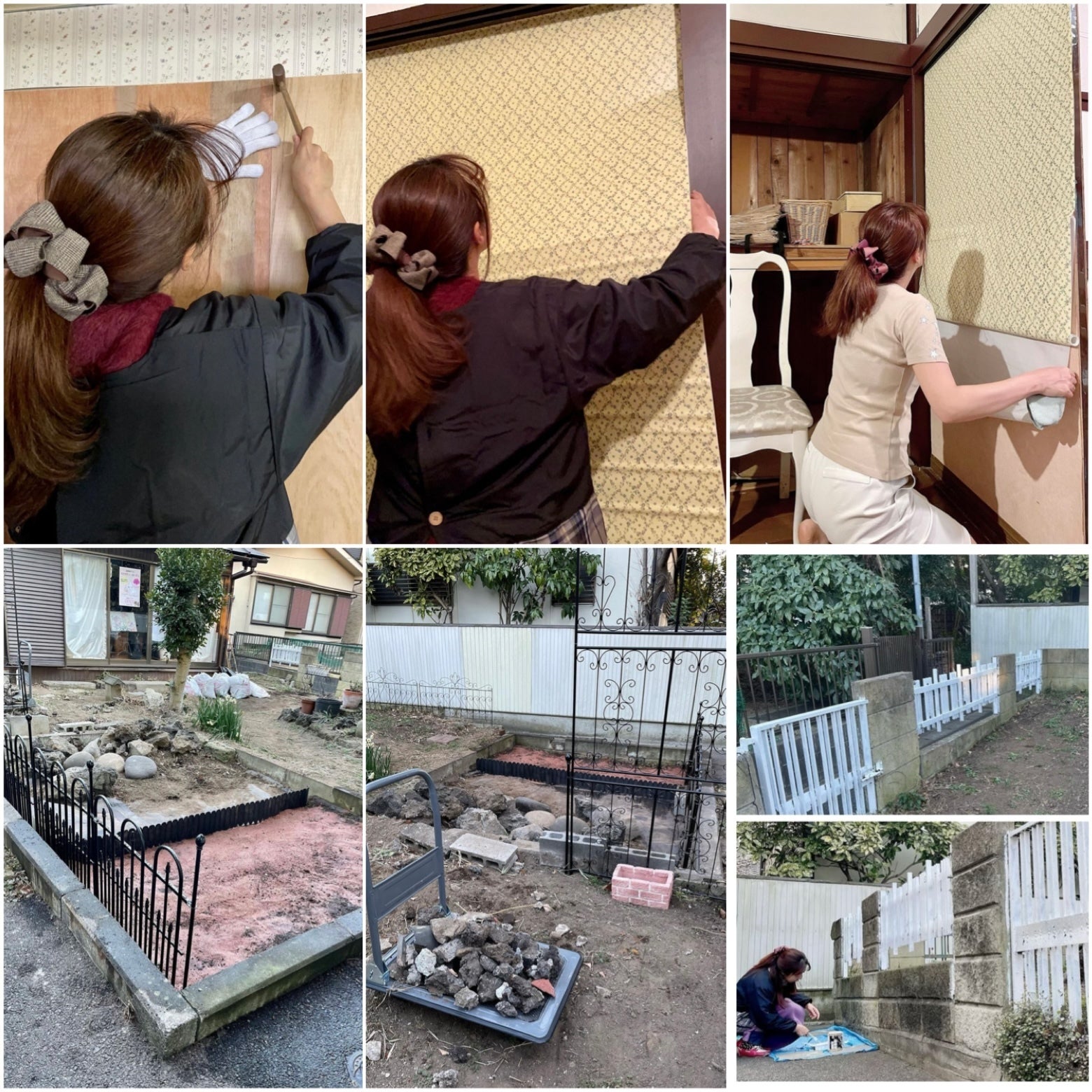 ジャングルのようになった庭の草刈り、岩を割り運び出す土木作業、壁作り、壁紙、ペンキ塗り、床張り、アラフィフ女1人きりのDIYが始まりました。